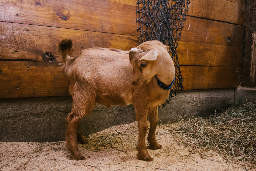 Pearl (white), an adult goat, has been with the Winner’s Circle Center for a while. Although she is reaching older age and suffers from some mobility challenges (which she doesn’t let slow her down), she is a sweet and beautiful lady. I made a special connection with her while capturing her portrait. While crouched down to meet her level with the camera she came to me and rested her head in my lap while I pet her.
