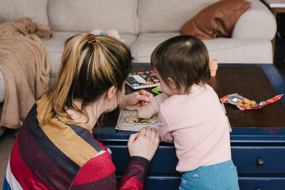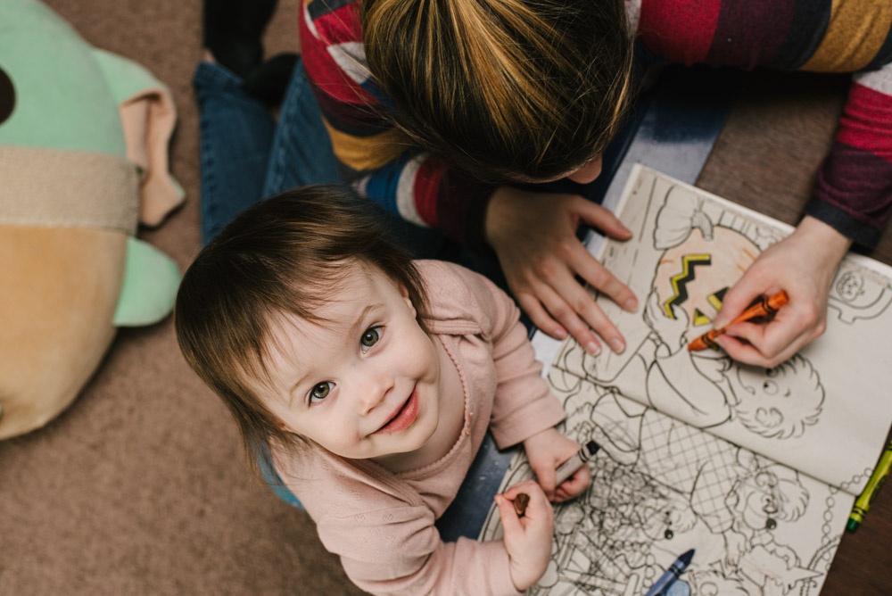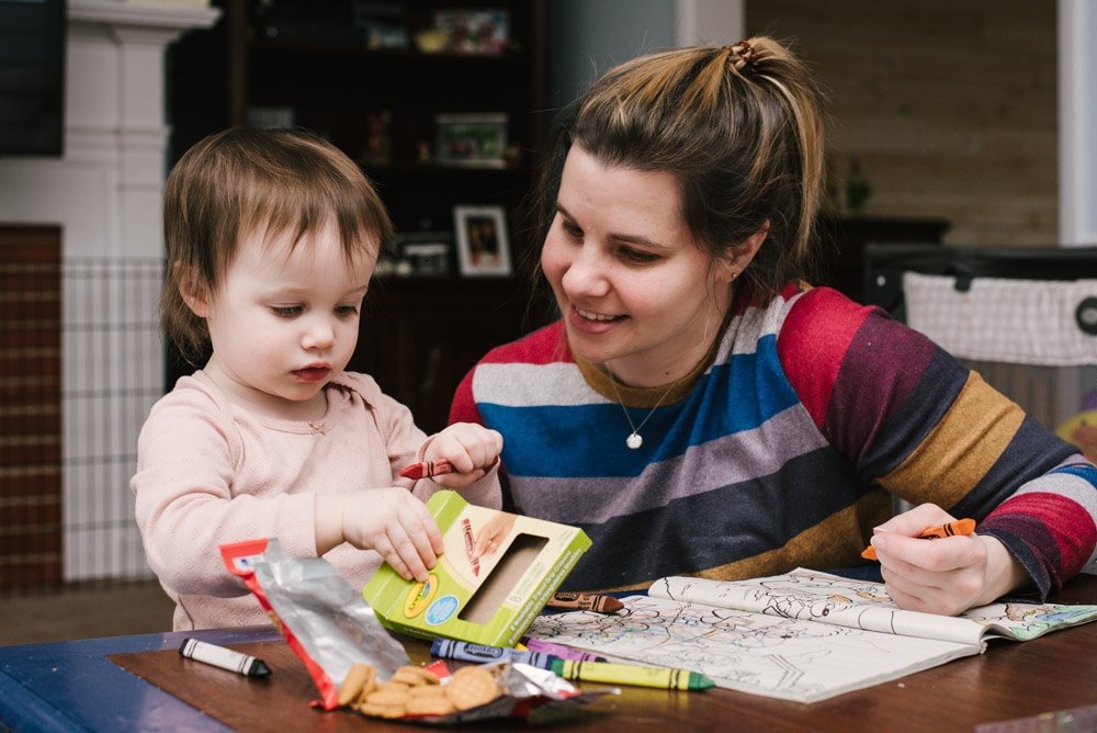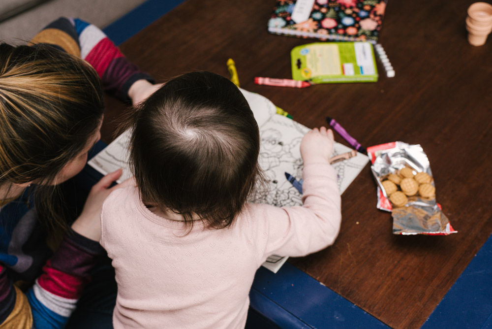 Lily had a colorful afternoon exploring with crayons and coloring books. Of course, she enjoyed some cookies too.