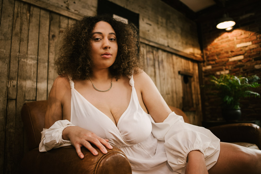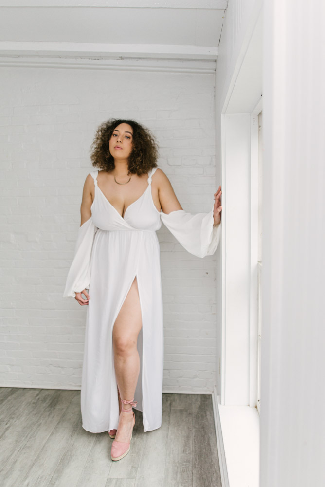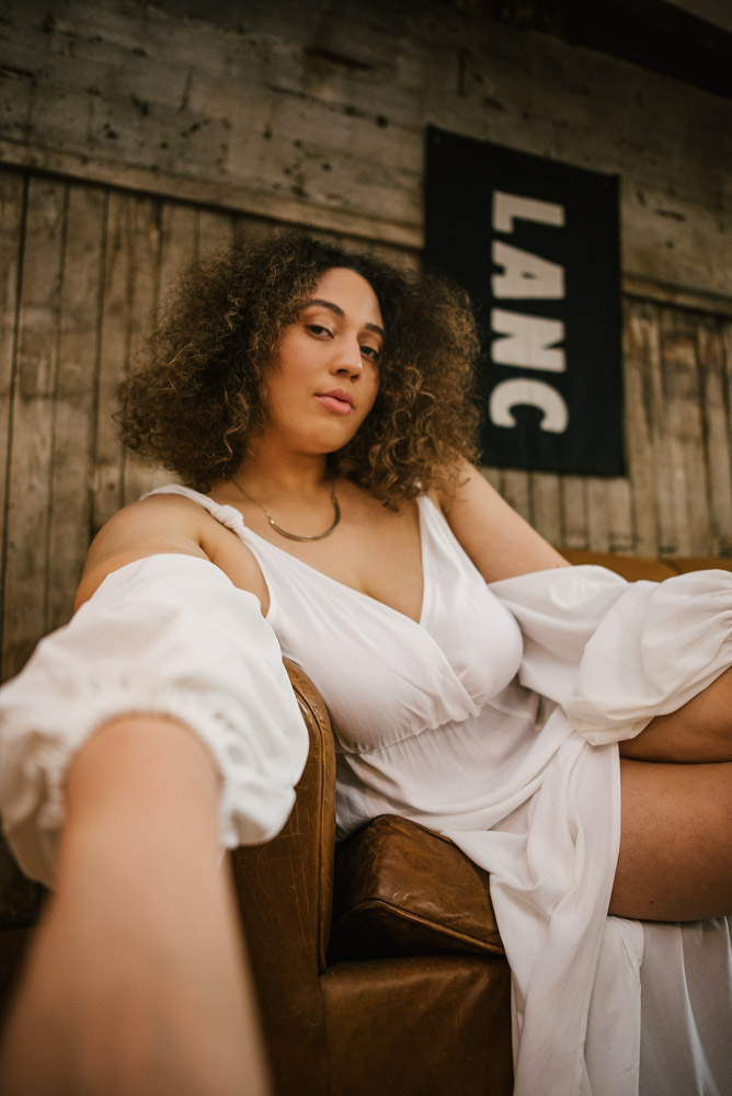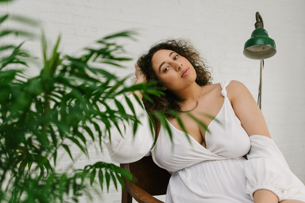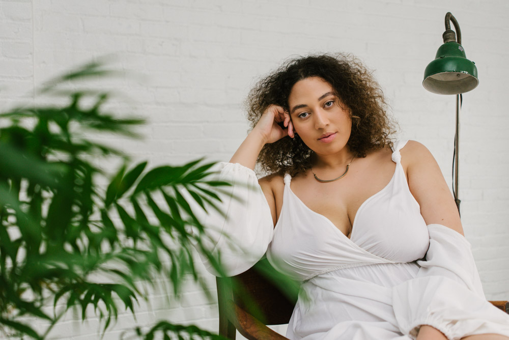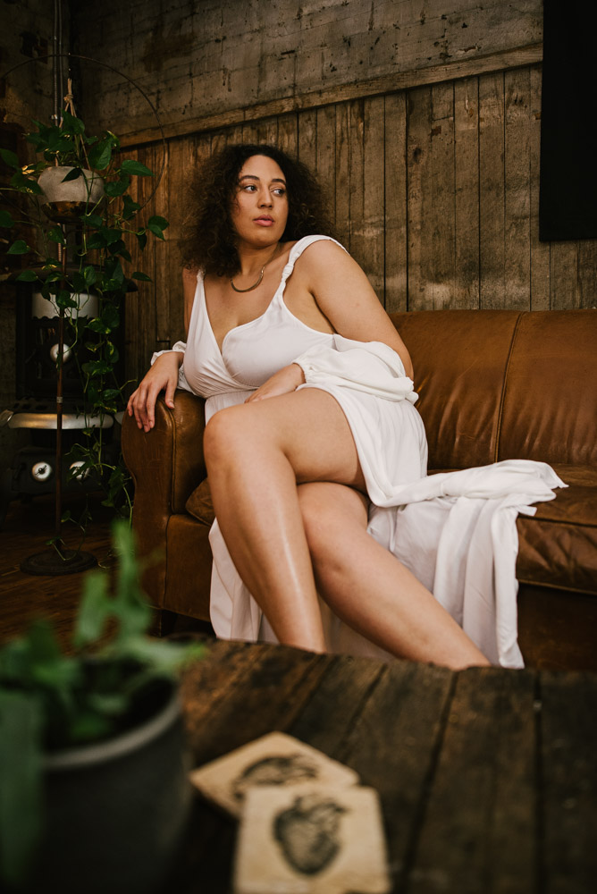 Ashlyn and I met up at the Hingework studio in Lancaster, PA. The large, white photo space was perfect for the images Ashlyn had in mind and complemented her flowing, white dress. Vintage furniture, as well as plants also helped add some flavor. Finally, we also took advantage of the lounge room adjoining the studio. The room is full of character left from the building’s origins as a cigar box factory.