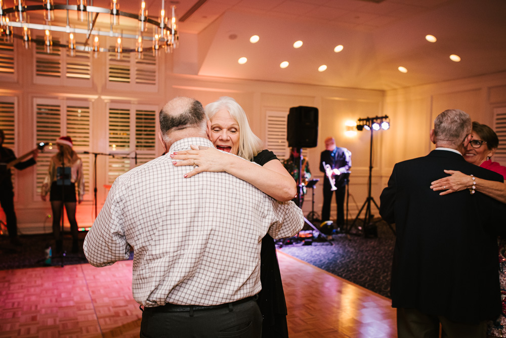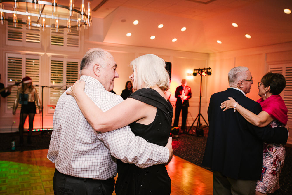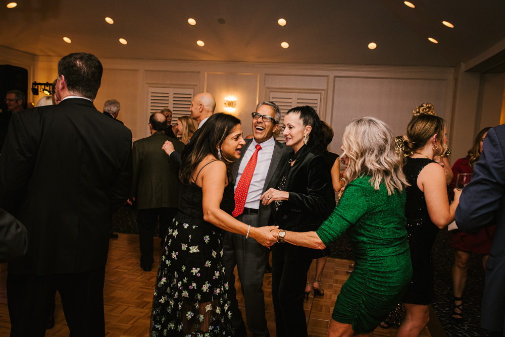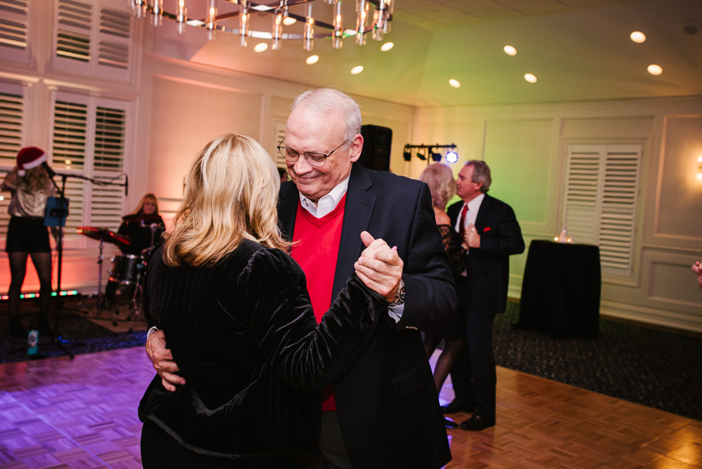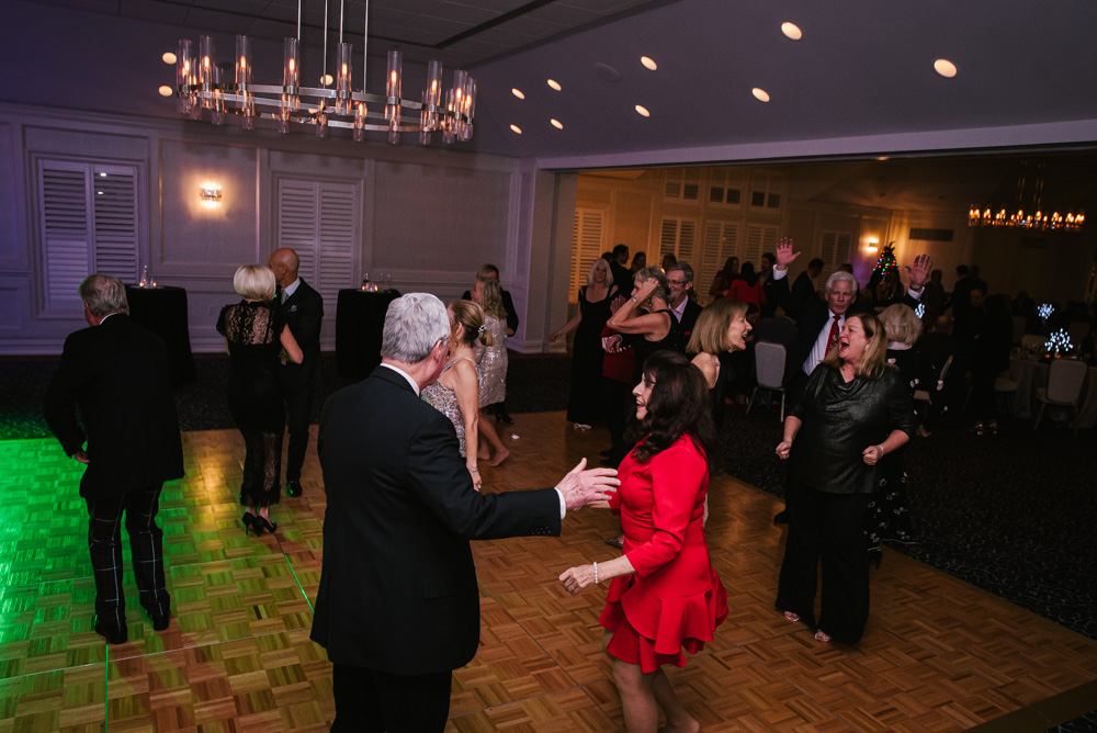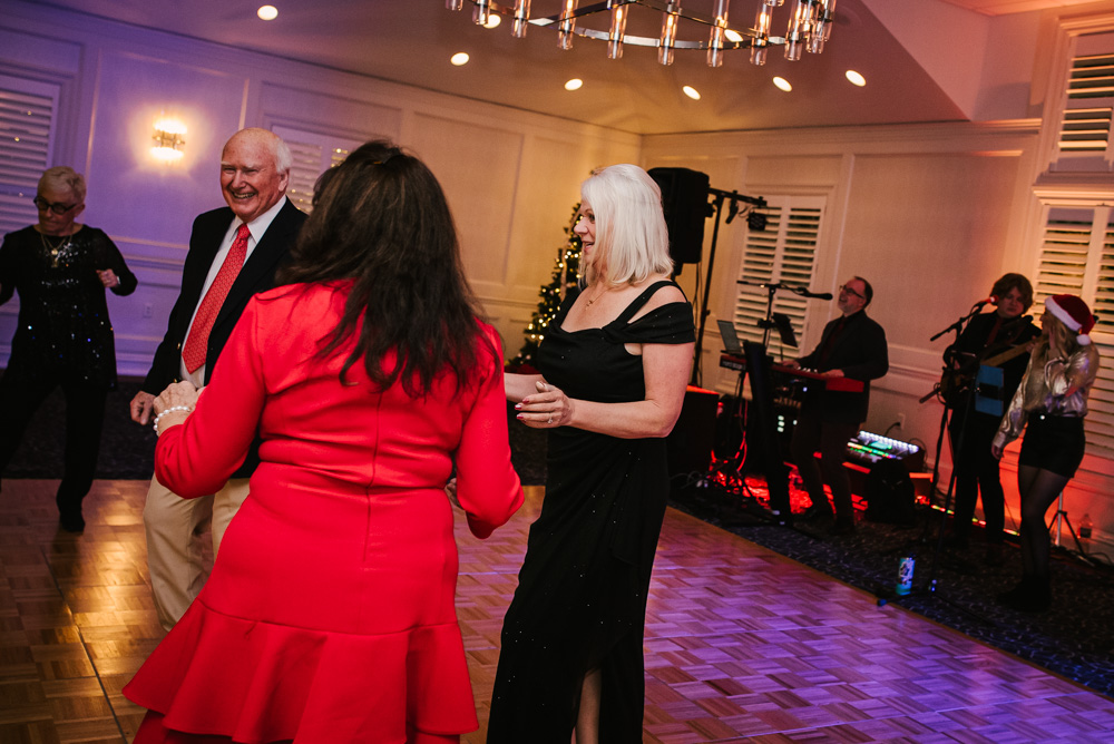As guests arrived, they were welcomed into a beautifully decorated venue, complete with twinkling Christmas trees, elegant garlands, and sparkling centerpieces. I took the opportunity to capture posed portraits of members and their loved ones against this festive backdrop.