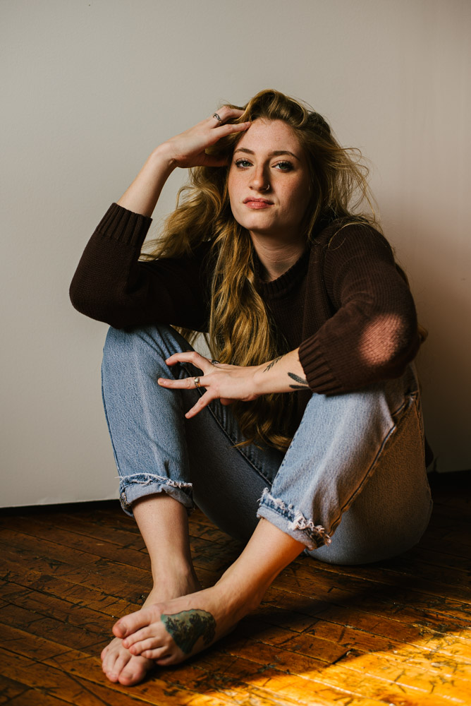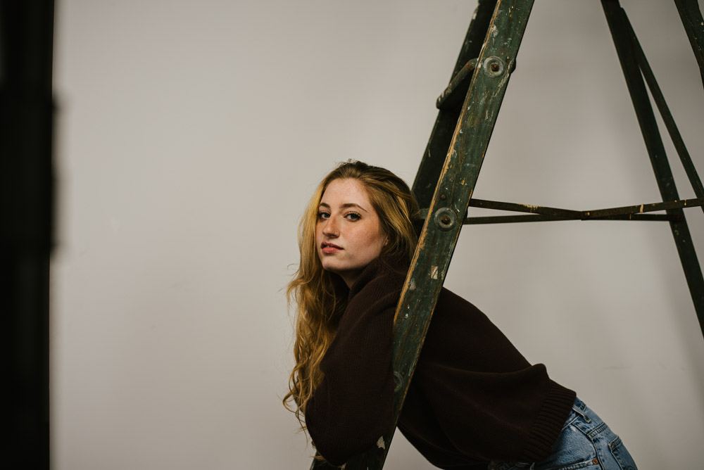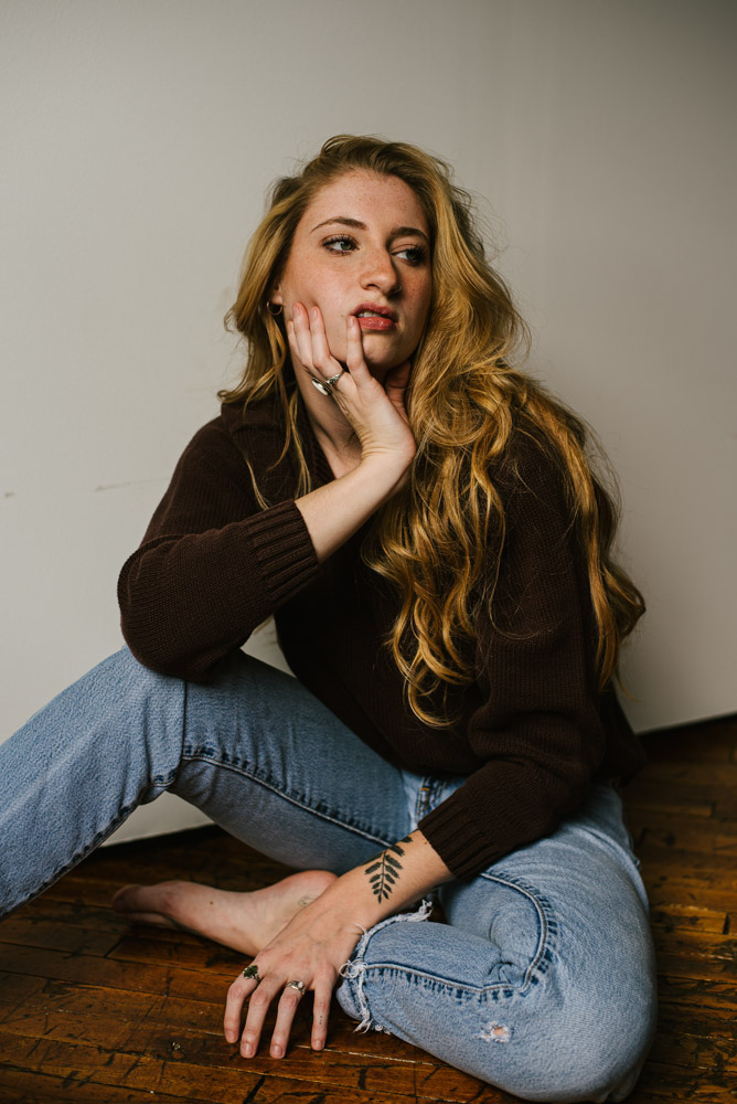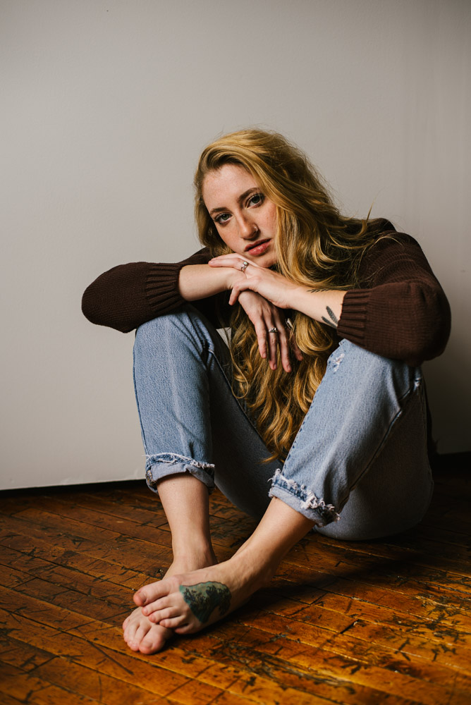 I met Bri during a meet up of Central PA photographer and models, and I’m so glad we did! Bri is a really awesome and down-to-earth model and photographer. We started our session at the beautiful Leaf & Loft photo studio for some moody portraits with a white background and perfectly aged hardwood floor.