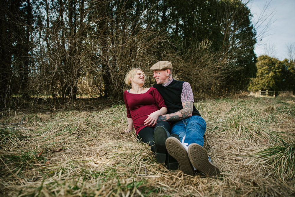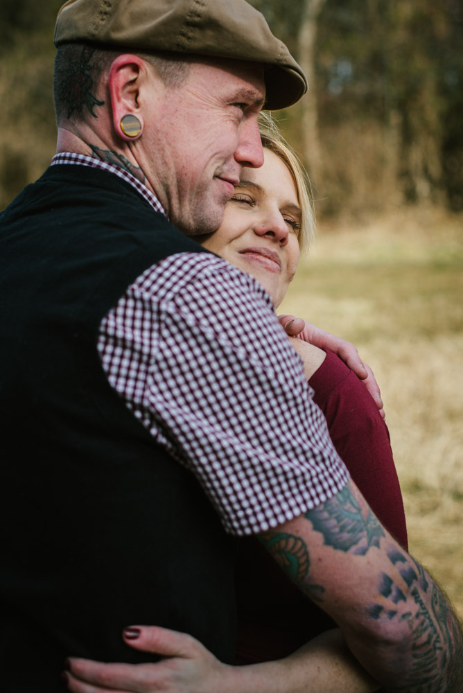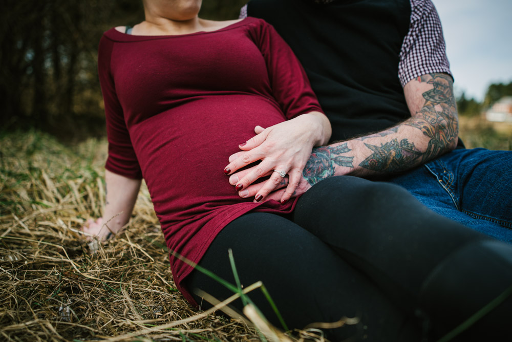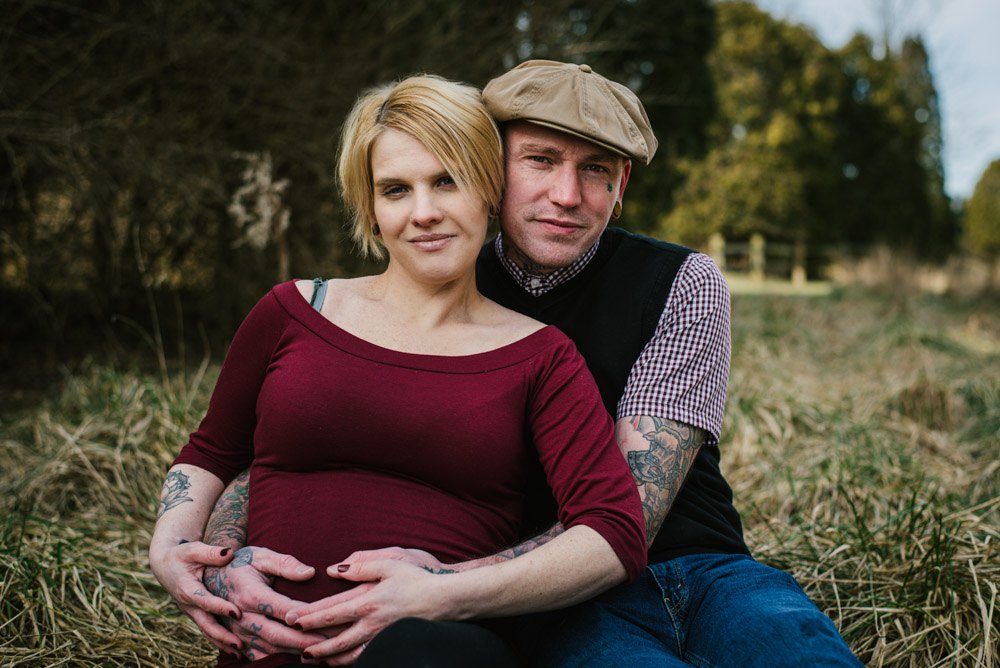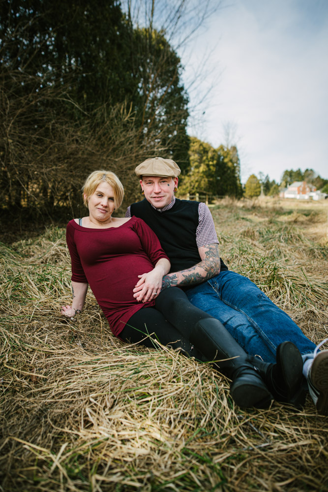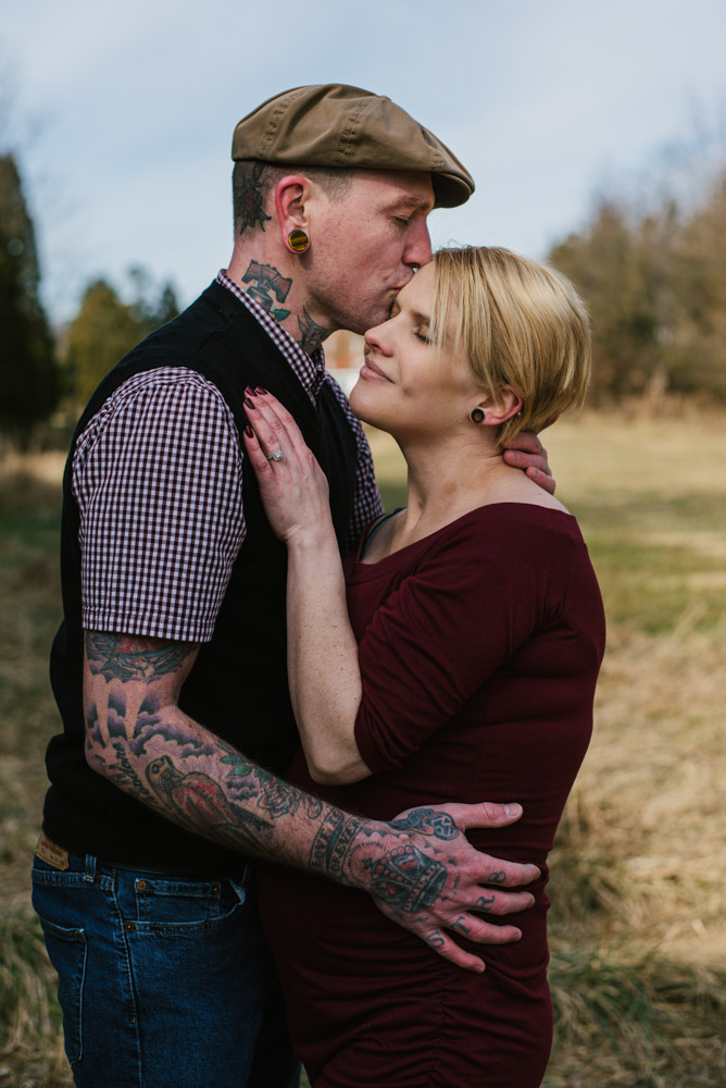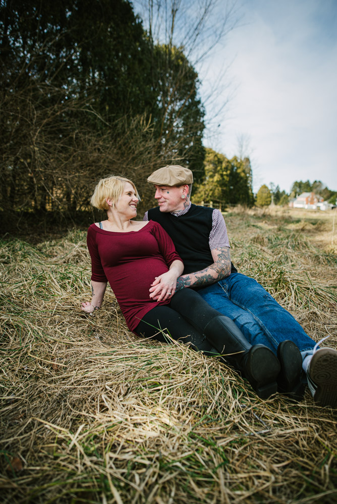 Brittany loved the idea of capturing these maternity, couple portraits at Overlook Park which has a beautiful, evergreen, tree grove. The grove has a fairytale feel to it and is a great place to shoot any time of year. It always looks photogenic. You’d never know that these portraits were captured on a very cold winter day. These two braved the elements, but they didn’t mind snuggling for photos to keep warm!