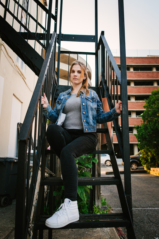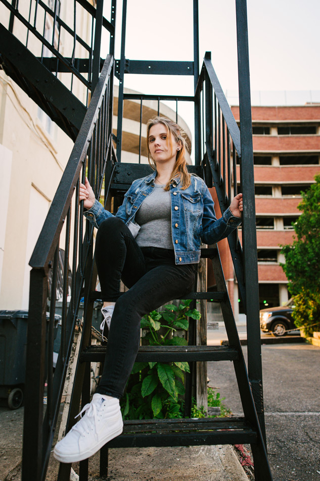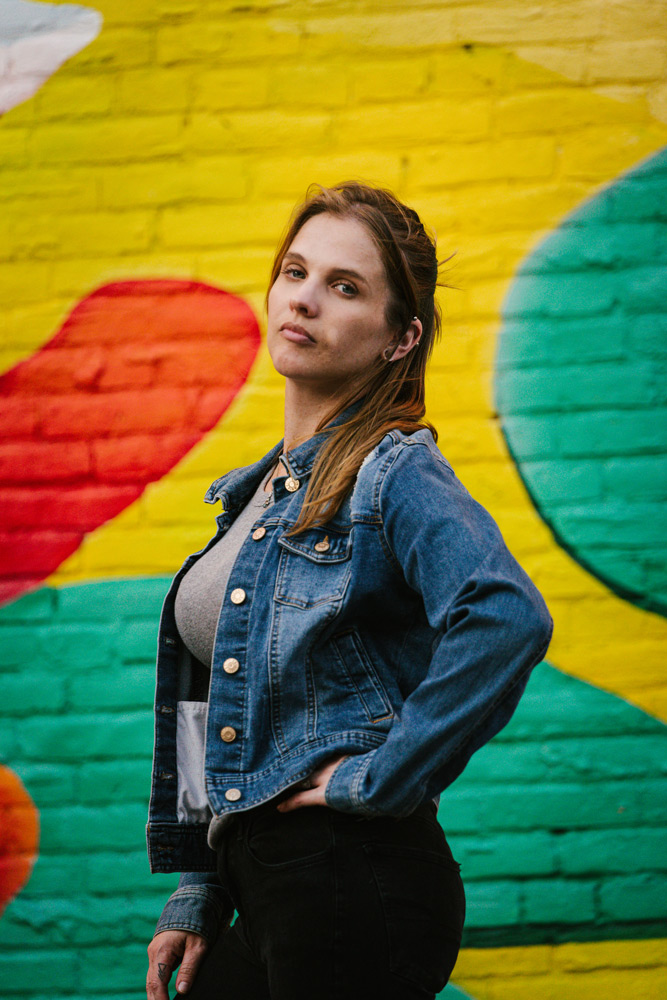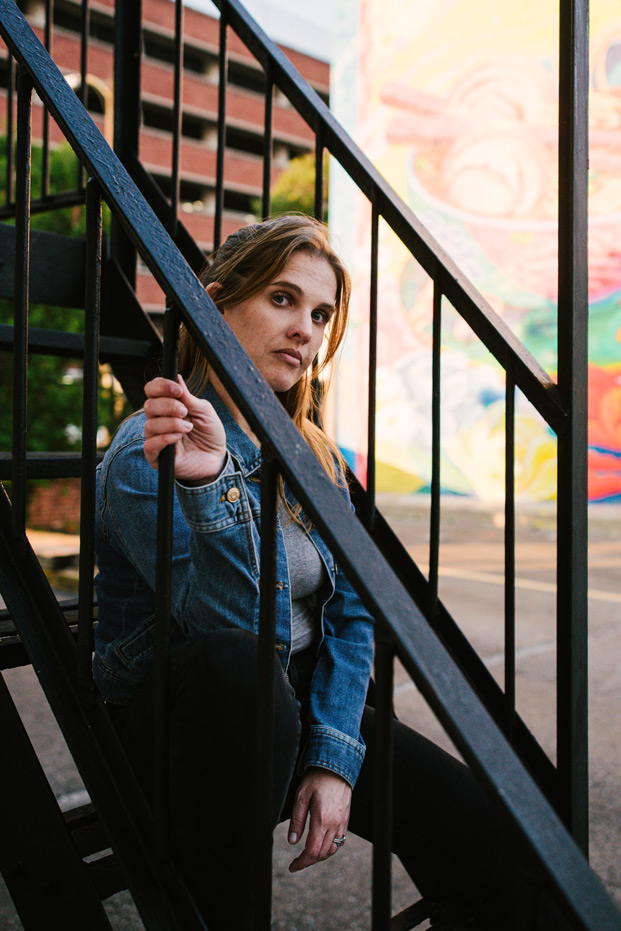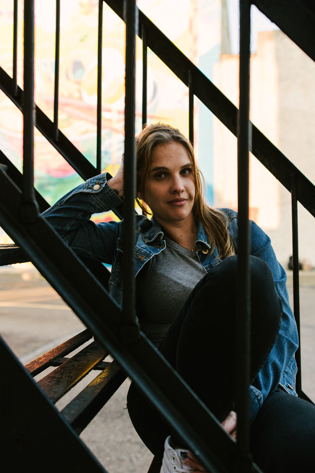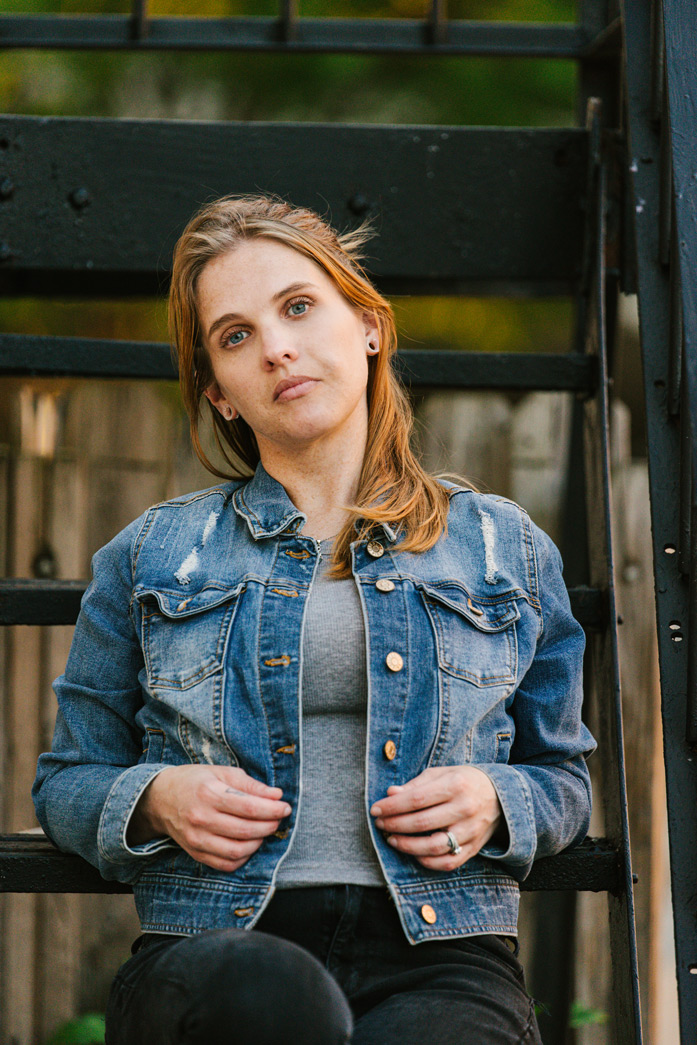 We explored the city’s backdrops that matched her energy: weathered concrete walls, old fire escapes, and bold painted murals. Each location added its own texture to the shoot, enhancing the raw, urban feel of her portraits. Brittany’s confident yet relaxed poses gave every shot an edge, making it feel like a throwback album cover with a modern twist.
