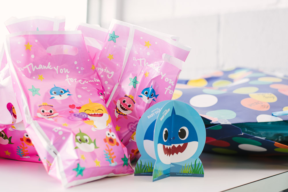 During the party, all family and friends were encouraged to take a special photo with Chessie. A Baby Shark backdrop and props gave the perfect set up for the shots. Each person enjoyed their moment with the birthday girl. Photo booths are a great addition to any party and prints of the photos make great party favors!