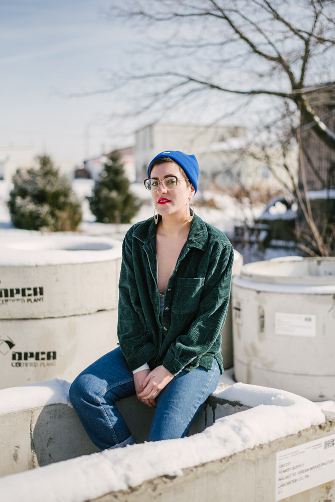 Emily is a super adventurous and kind soul with an infectious laugh and smile. We had so much fun on this shoot exploring the location and trying different things. As a result, Emily looks like an absolute rockstar in these images! Emily is a fellow Lancaster-based artist. She makes enthralling collages under the name Collage Dropout. Check out her work—you’ll be glad you did. Thank you for the adventure, Emily!