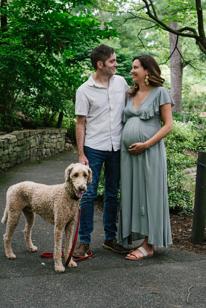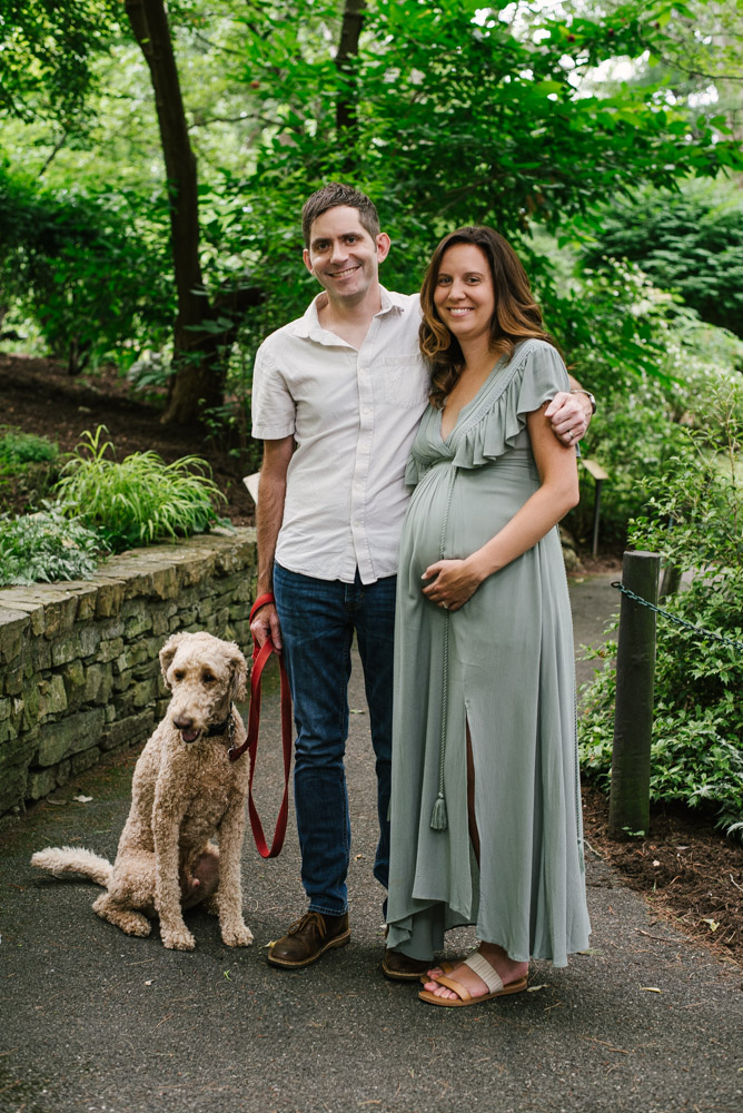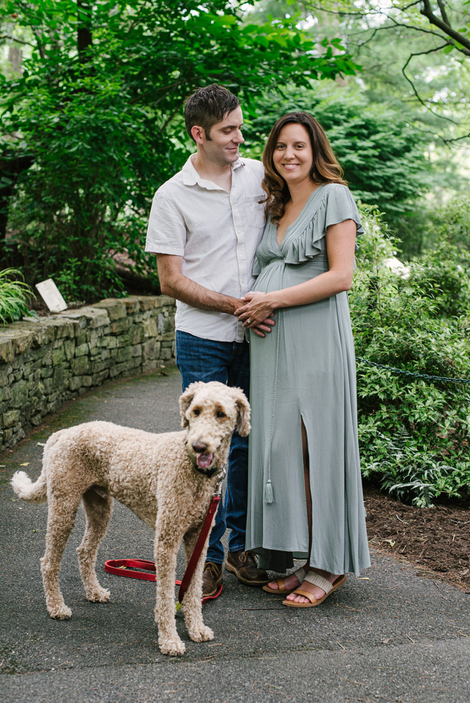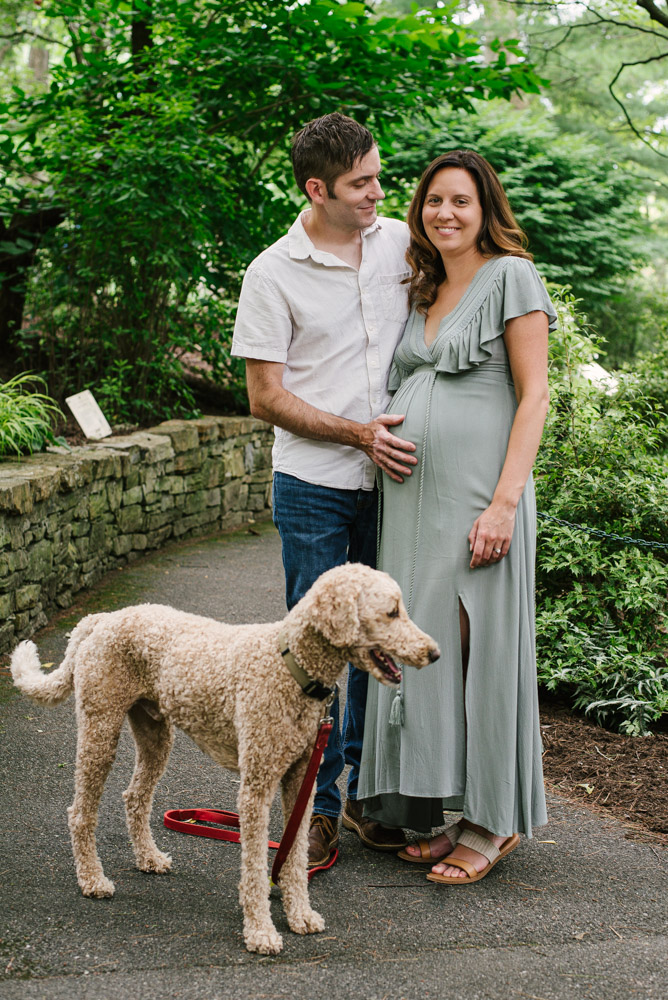 Erica and Seth are local English teachers who are excitedly preparing for the birth of their first child. The couple has chosen not to learn the sex of the baby before birth, so they cannot wait for the surprise! Erica and Seth celebrated with a mini photo session at the Garden of Five Senses in Lancaster. They brought along their handsome poodle Hobbs to include in some photos as well. Pets are always welcome to join your photo session with Chris Corrao: Stories & Portraits. Thank you, Erica and Seth! Congratulations!