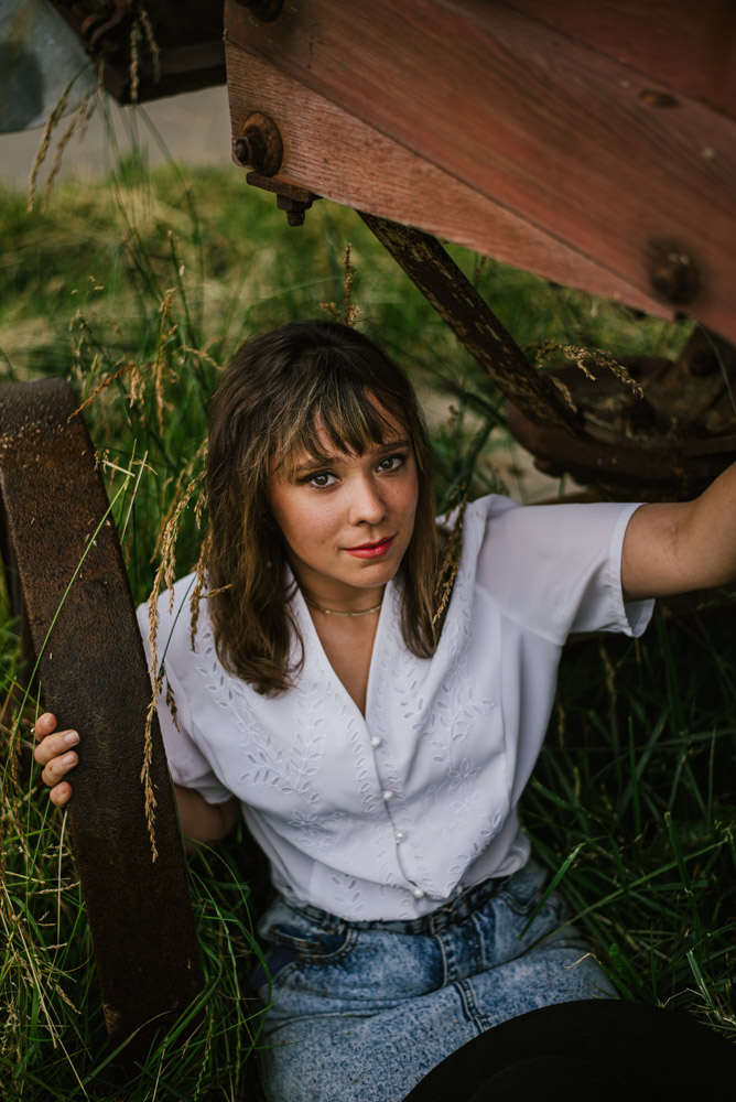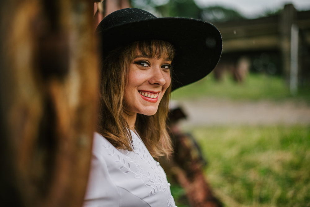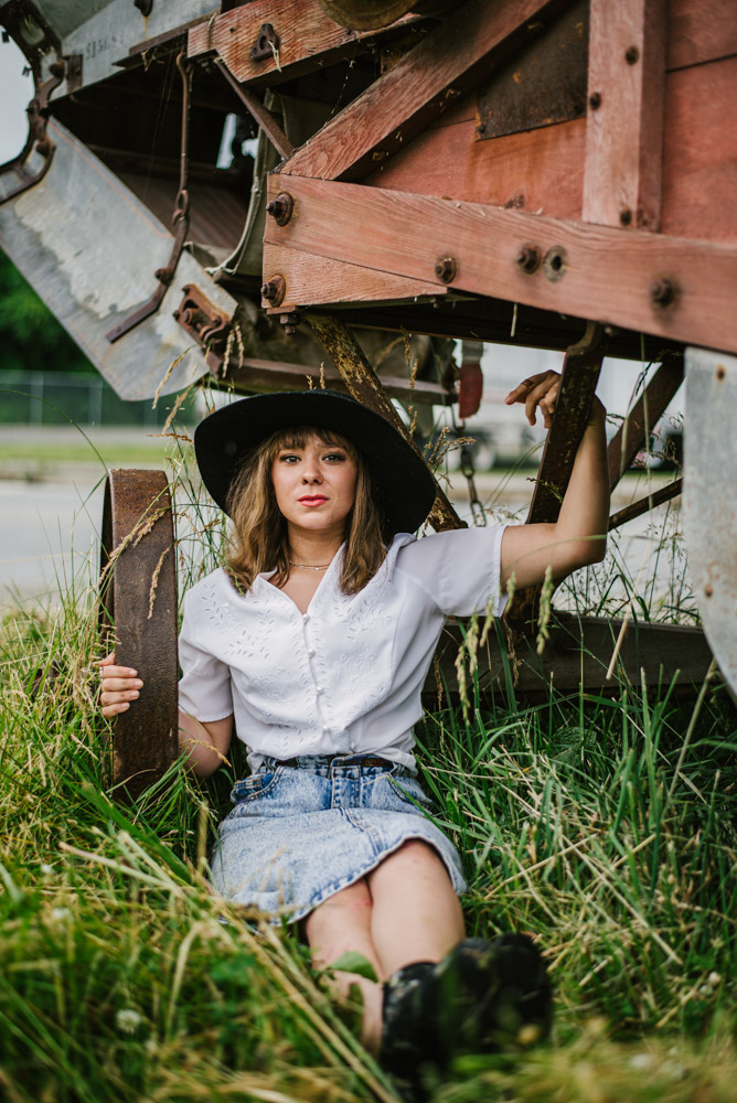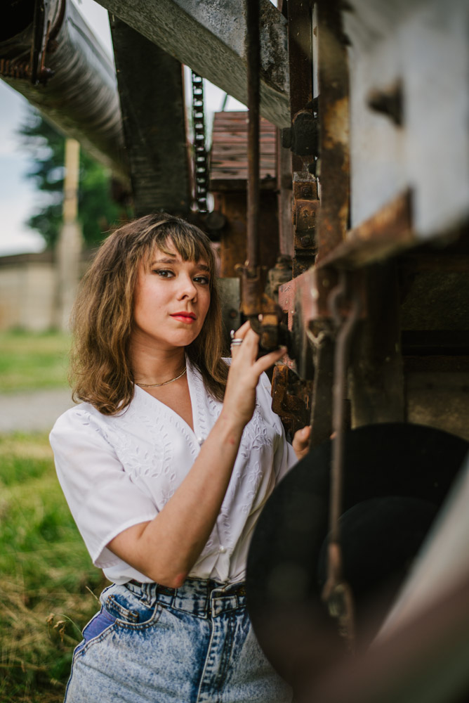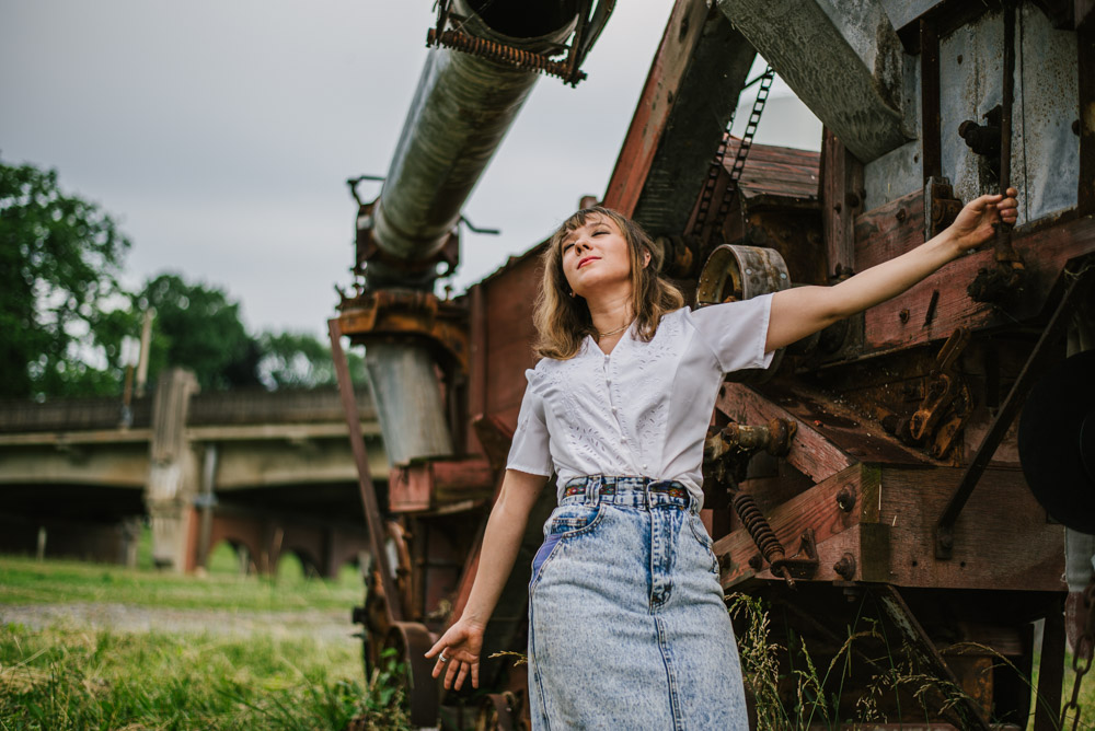 After leaving the cover of the bridge that was strategically sheltering us from the rain that started alongside our shoot, we were excited to find a random piece of antique farming equipment nearby.