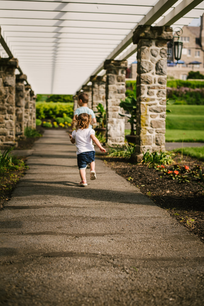 Giada is 2 years old! She loves playing with her brother Hugh—she follows him everywhere. This year we did her annual photos at the beautiful Masonic Village campus. When we got there Giada was much more interested in exploring than taking photos, so this year’s photos are very candid instead of posed. That didn’t stop me from getting some great pictures though. In fact these photos show the real Giada—rambunctious, independent, and having a great time.
