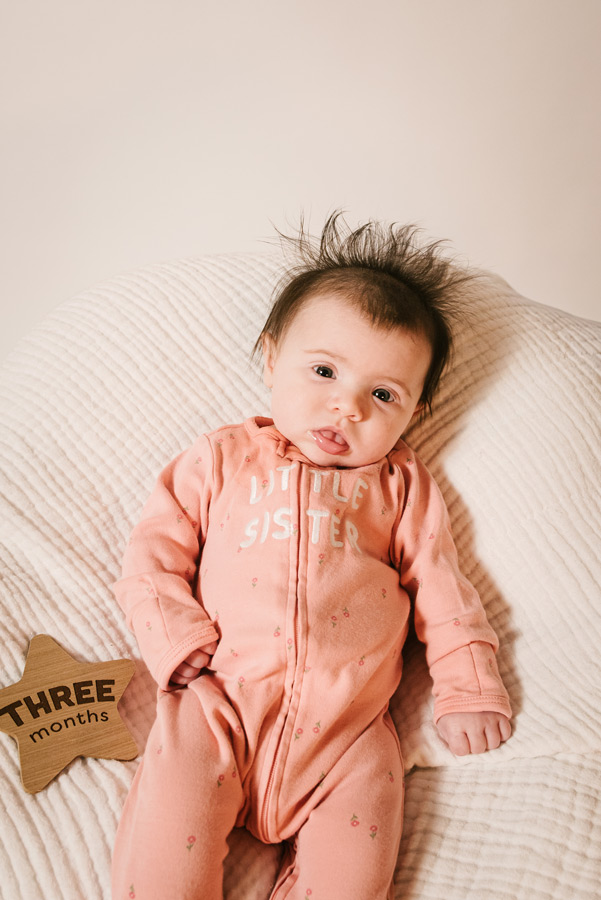 Capturing Juniper’s growth over her first three months has been such a joy. Each session highlights how quickly these early days change — from those first sleepy expressions to bright-eyed curiosity and emerging personality. It’s a privilege to document these fleeting moments as they unfold, preserving each milestone in timeless images her family will cherish for years to come.