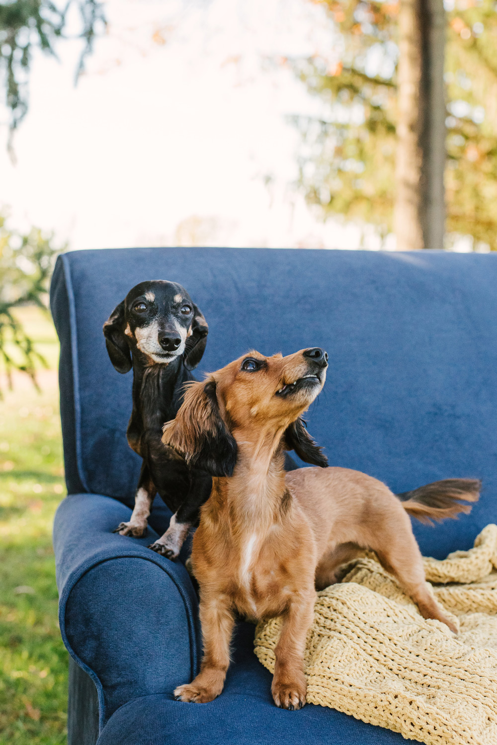 The dachshunds, with their long bodies and big personalities, were the stars of the show. One had a calm, regal presence, while the other brought boundless energy and curiosity to every moment. Together, they perfectly complemented the couple’s dynamic and added a playful, heartwarming element to the session.