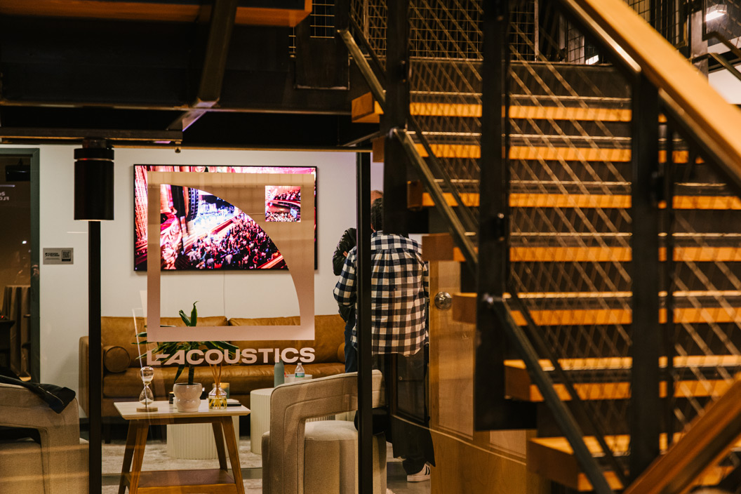 As part of the larger campus-wide conference, L-Acoustics’ contribution offered guests a chance to slow down, connect, and experience audio excellence in a relaxed yet immersive environment. The studio was transformed into a warm, inviting space with carefully curated bites and beverages flowing throughout the night, encouraging organic conversations among peers from across the live events and production industries.