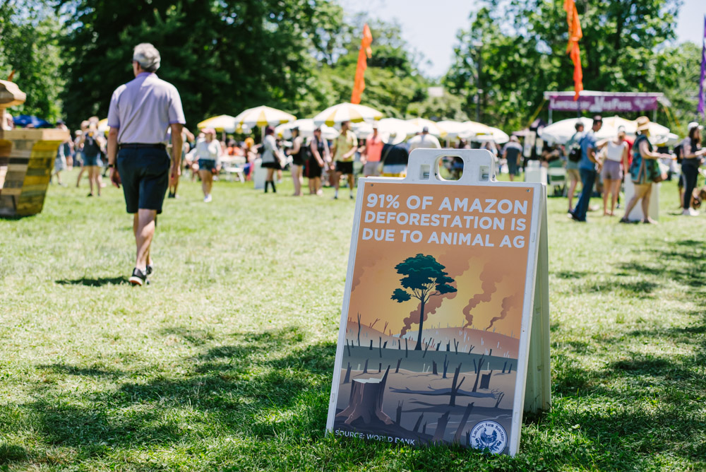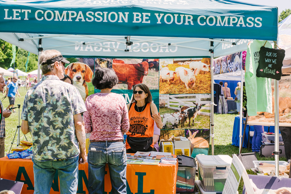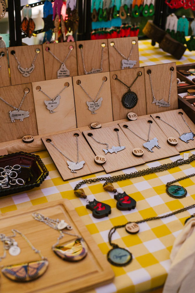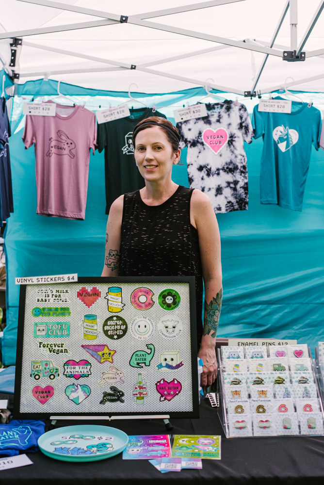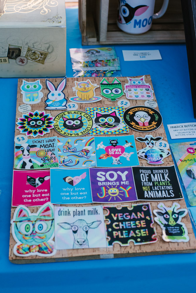 The vegan marketplace offers dozens of vendors selling plant-based products, which range from shirts, pins, and stickers to books and pet items. Tarot card readings, henna tattoos, plants, beauty supplies, and other goods are available as well. Additionally, multiple farm animal sanctuaries are present.