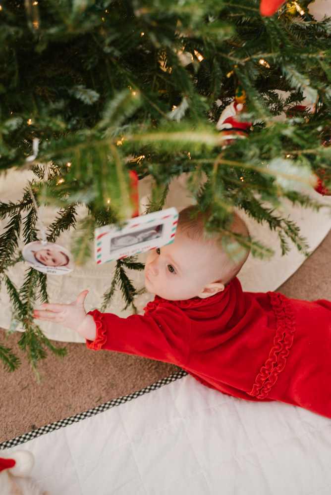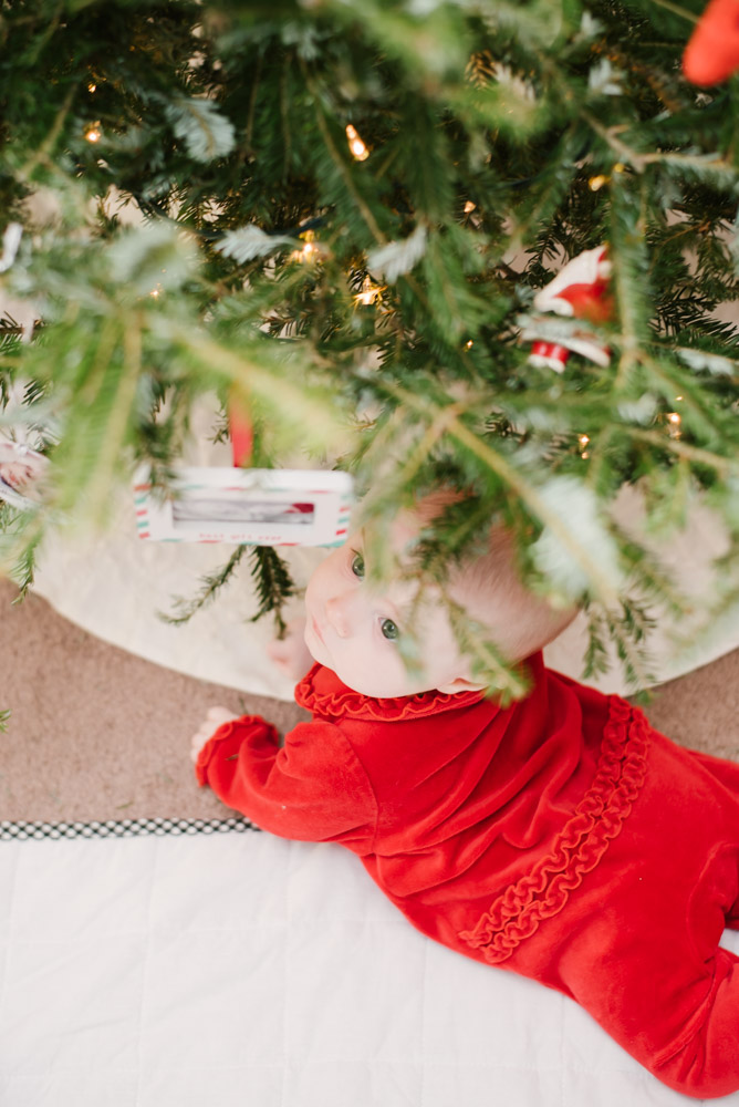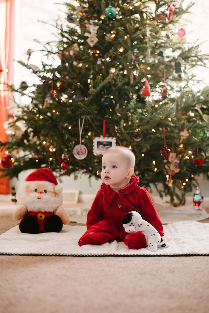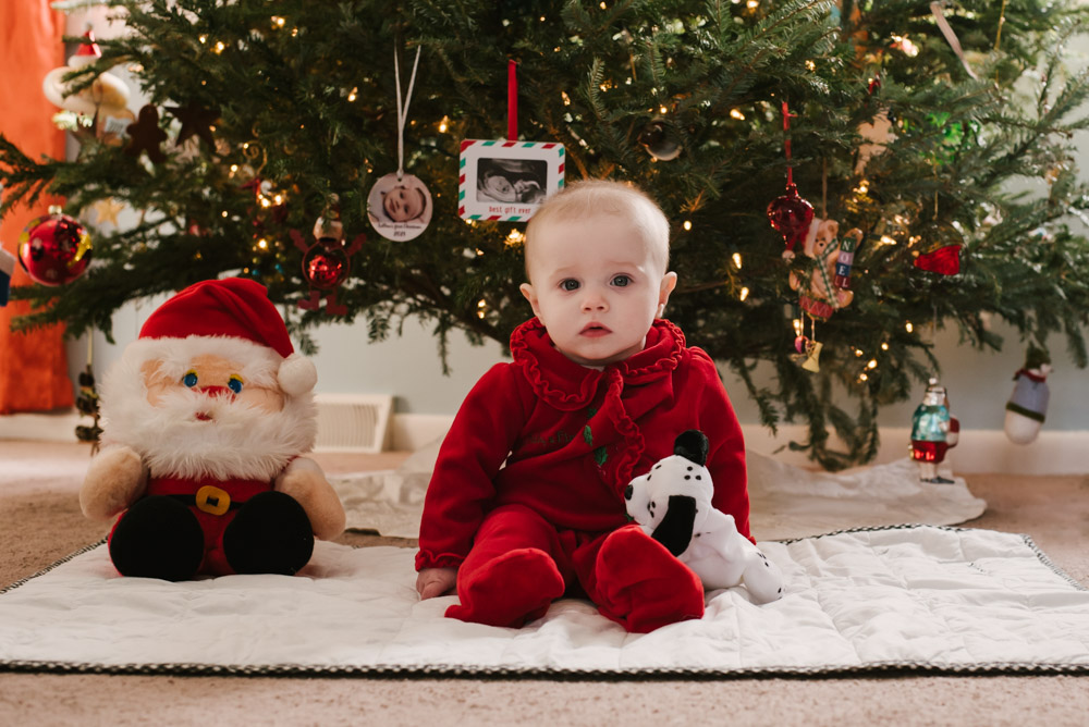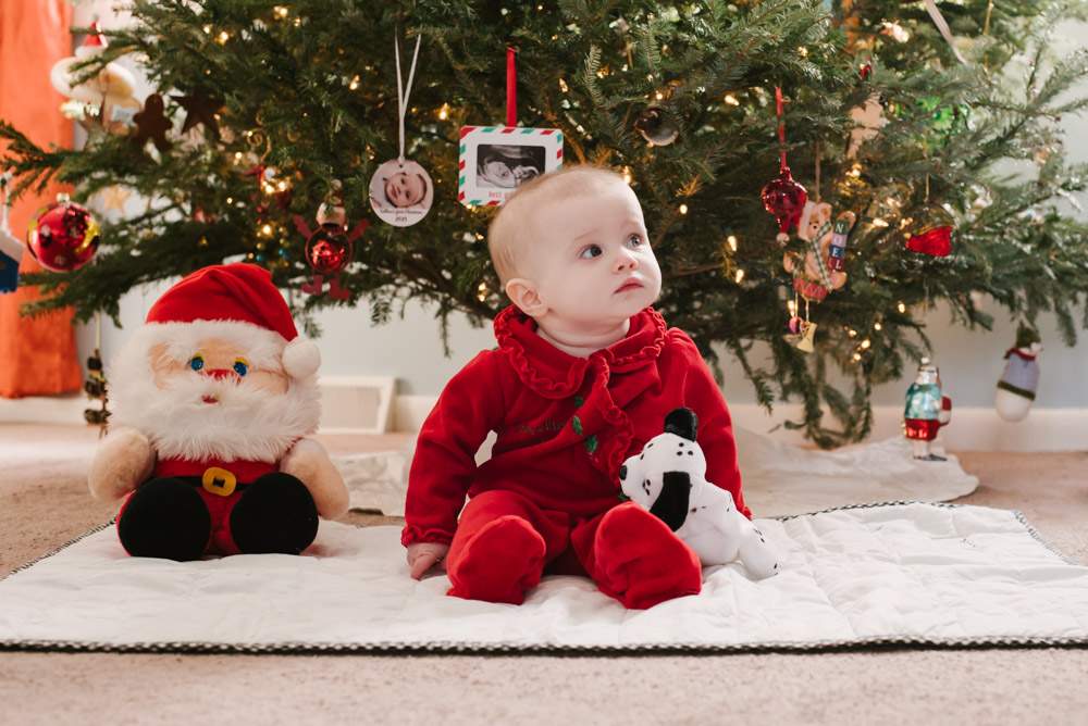 Baby Lily is seven months old. Photography is a great way to remember the fleeting moments of a quickly-growing baby! And, it’s always fun to add some personality to the photos through props and clothing. This month Lily celebrated her first Christmas!