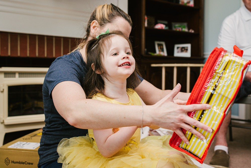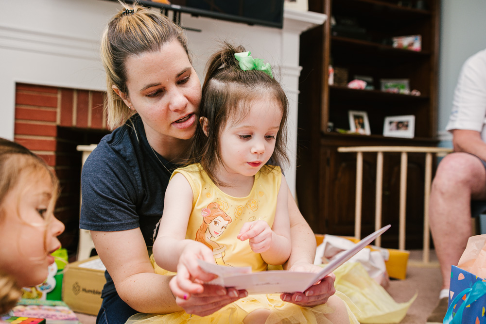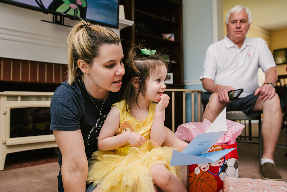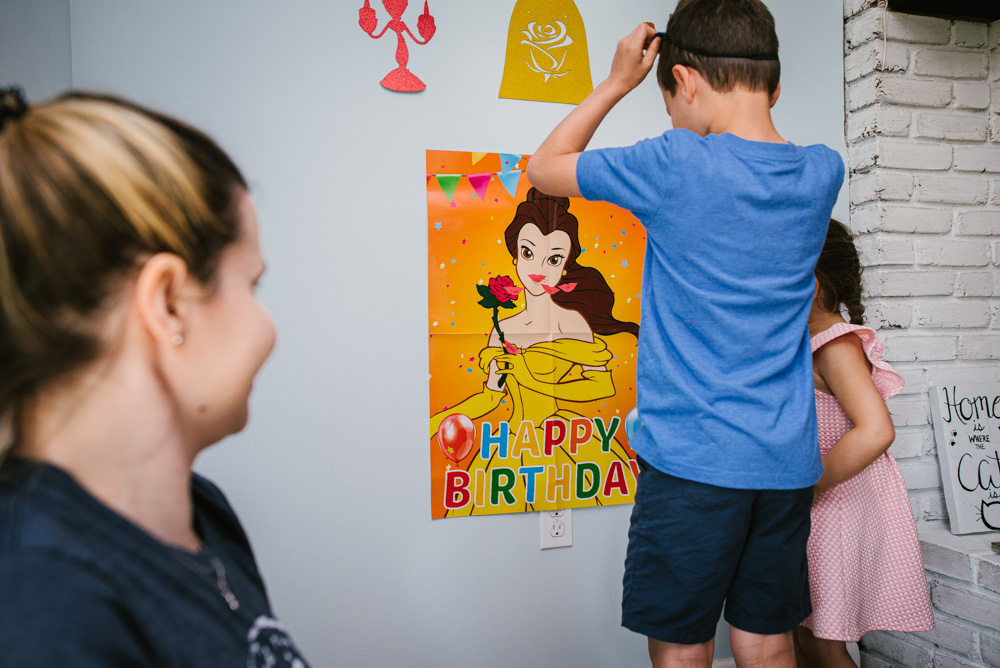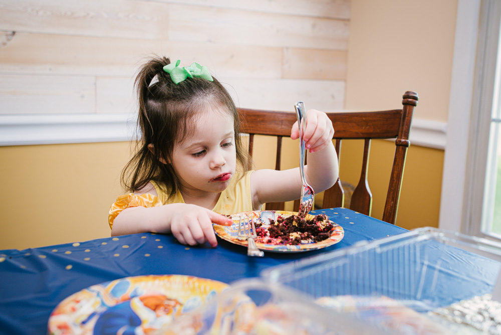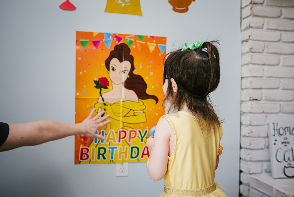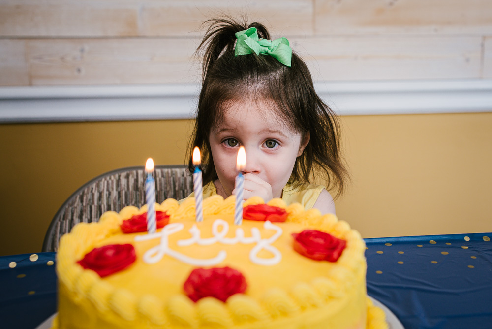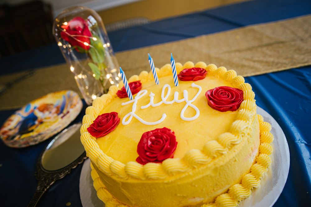 Lily celebrated turning 3 with her family at her Beauty and the Beast themed party. Roses, a special cake made by her aunt, Belle’s dress, and a pin-the-lips-on-Belle game brought the magic of the movie to life. Lily of course enjoyed lots of gifts and cake!