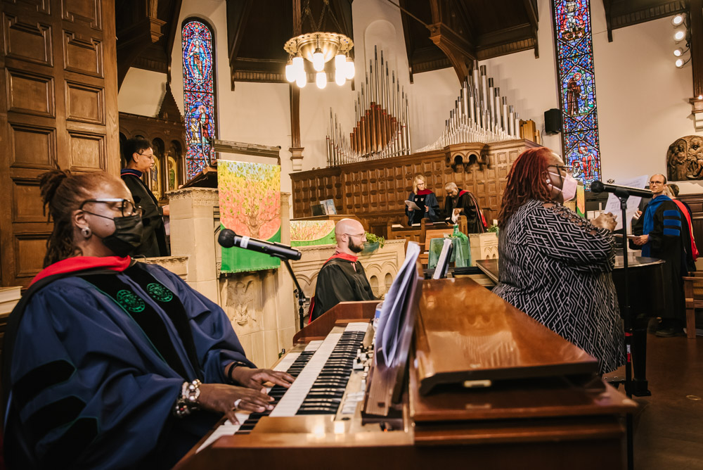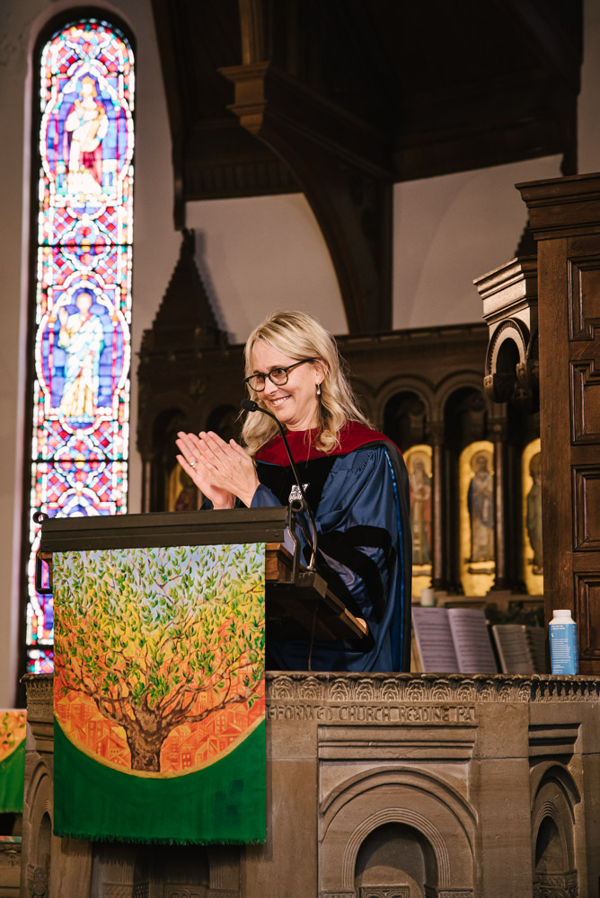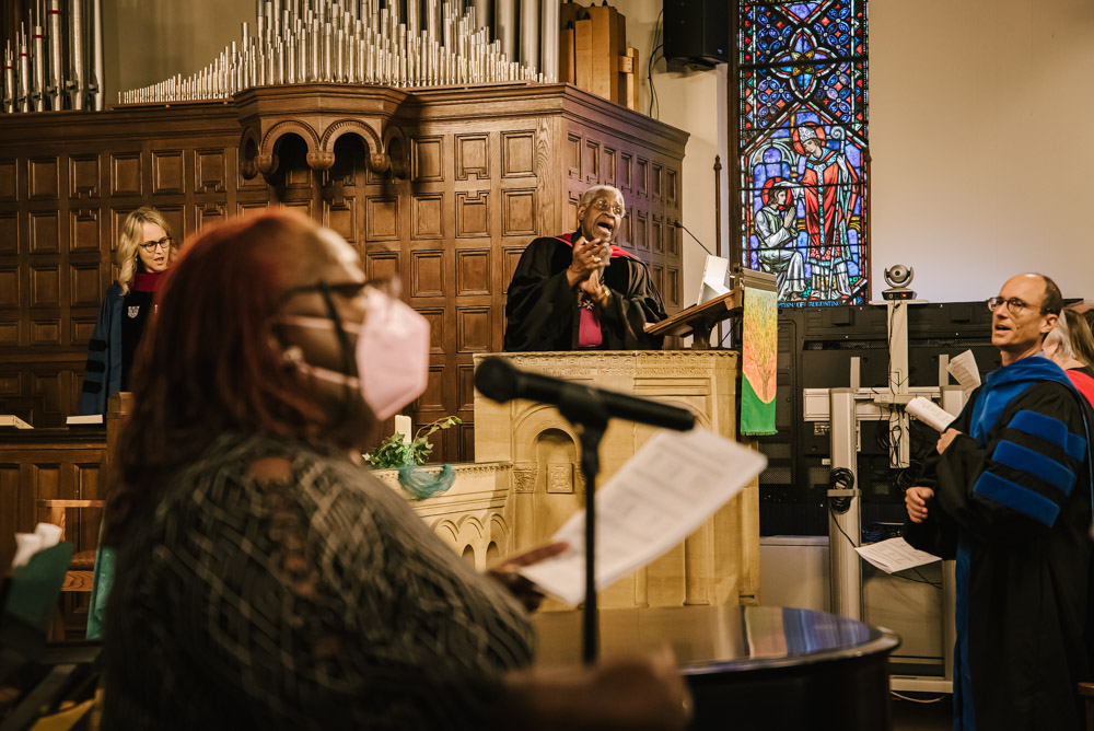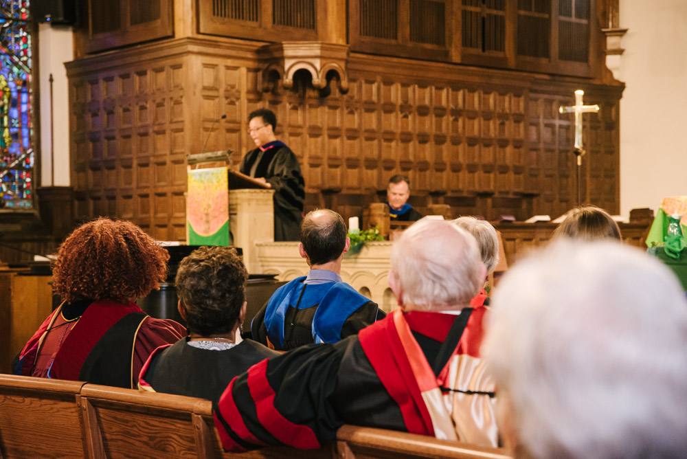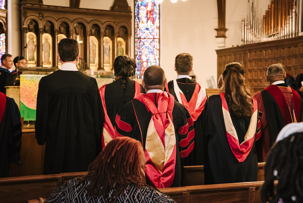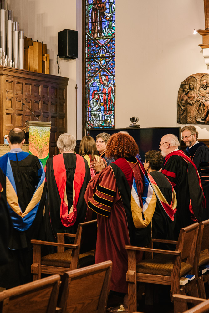Lancaster Theological Seminary held its Convocation in their historic Santee Chapel on August 26. New students, current students, staff, and community members gathered in prayer and song for the ceremonial opening of their 198th Academic Year. Additionally, the celebration was livestreamed on YouTube for those who could not attend in person. A festive reception followed Convocation in the Dietz Refectory with refreshments from the PepperTheo Cafe.
