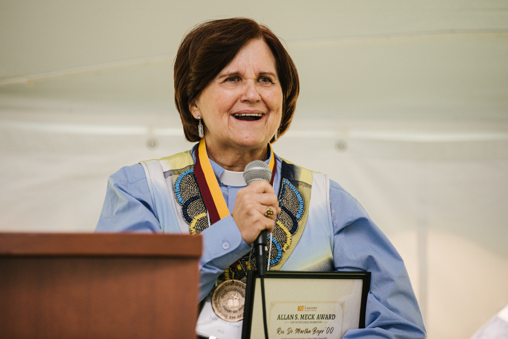 The morning service was followed by a friendly lunch. The luncheon program including a welcome speech from a former student, a State of the Seminary address by the Rev. Dr. Heather Vacek, awards and more. Rev. Dr. Martha Boyer, Class of 2000, and the Rev. J. Kenneth Trauger, Class of 1962 were celebrated as the Meck and Moss Award recipients.