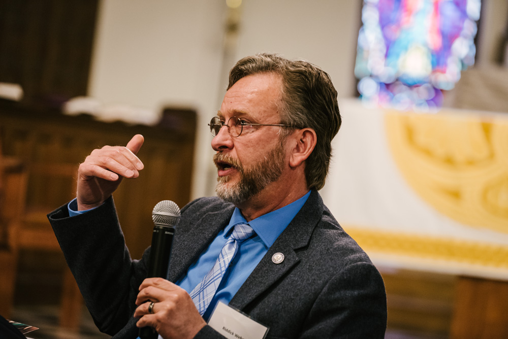 The day ended with a panel discussion exploring the ways in which union does not require uniformity or the minimization of distinctive identities. Differences can be complementary rather than oppositional. The discussion considered the mutually enriching complementarities of Lancaster Theological Seminary and Moravian Theological Seminary as the two institutions move into a common future, strengthened by the unique gifts that each institution can offer each other. Panelists included: Dr. Lee Barrett, Mary B. and Henry P. Stager Professor of Theology, Lancaster Theological Seminary and Rev. Dr. C. Riddick Weber, Director, Master of Arts in Theological Studies, Moravian Theological Seminary.