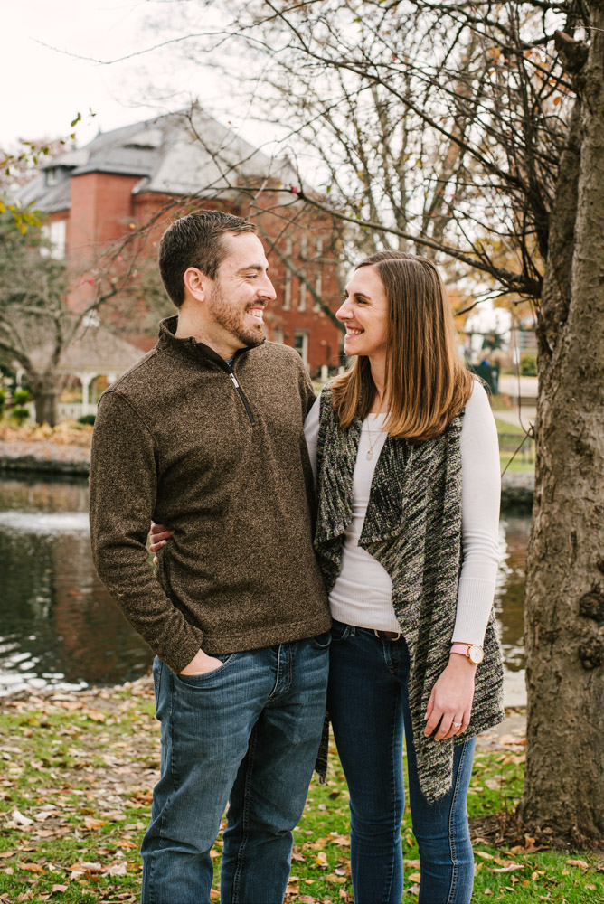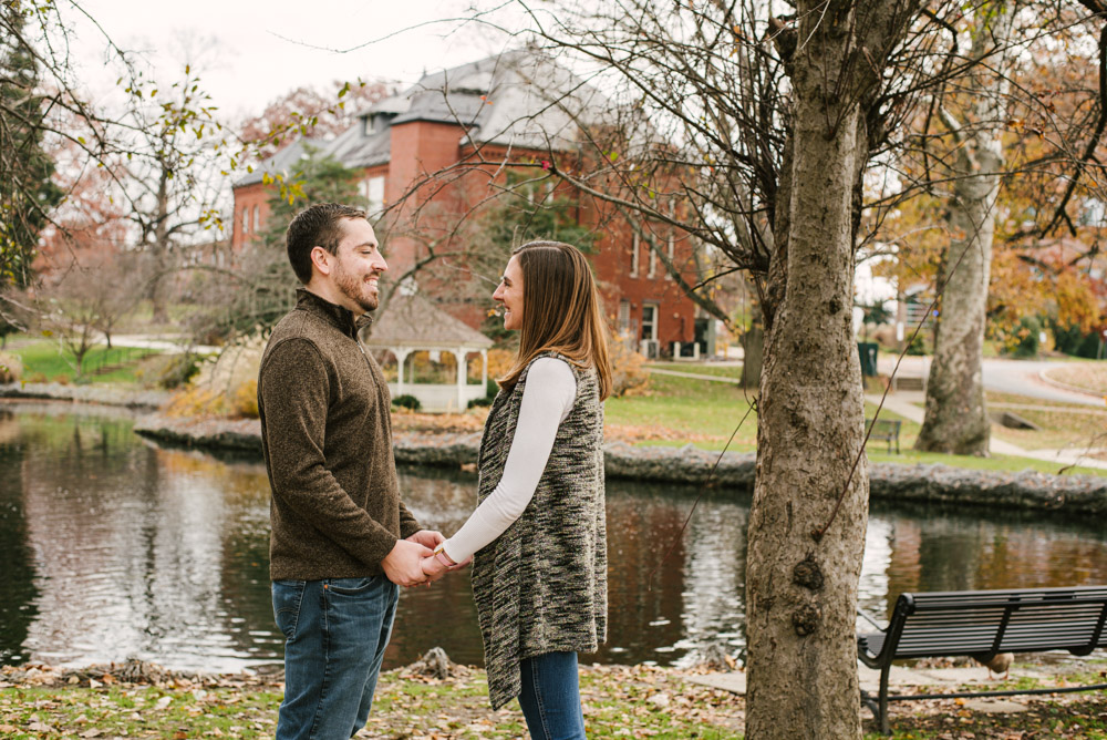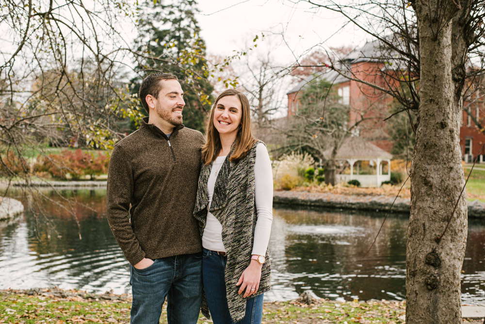 Lindsay and Matt came to town from the Philadelphia area to spend Thanksgiving with their families. Having just celebrated three years of marriage, it was a perfect time to get new couples portraits together. We met on the Millersville University campus for the photo session and utilized the historic nature park. The pond at this park is home to MU’s famous swans (named Miller and S’ville) plus many ducks and turtles. This lovely spot and fall morning light mixed perfectly with a great couple produced beautiful and genuine photos Lindsay and Matt can cherish forever. You can clearly see their love for each other in these shots!