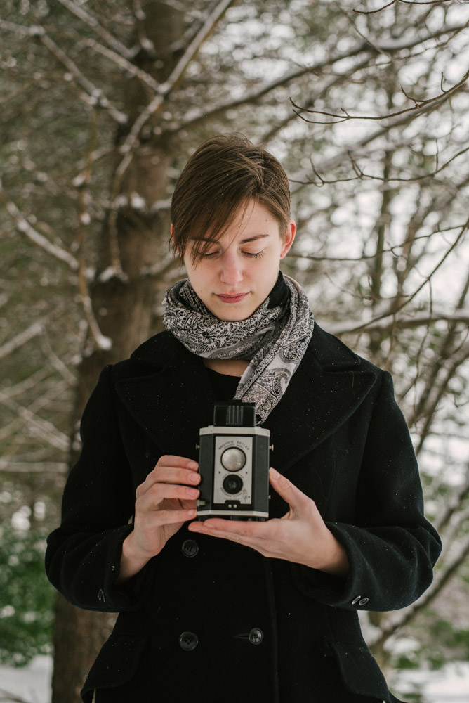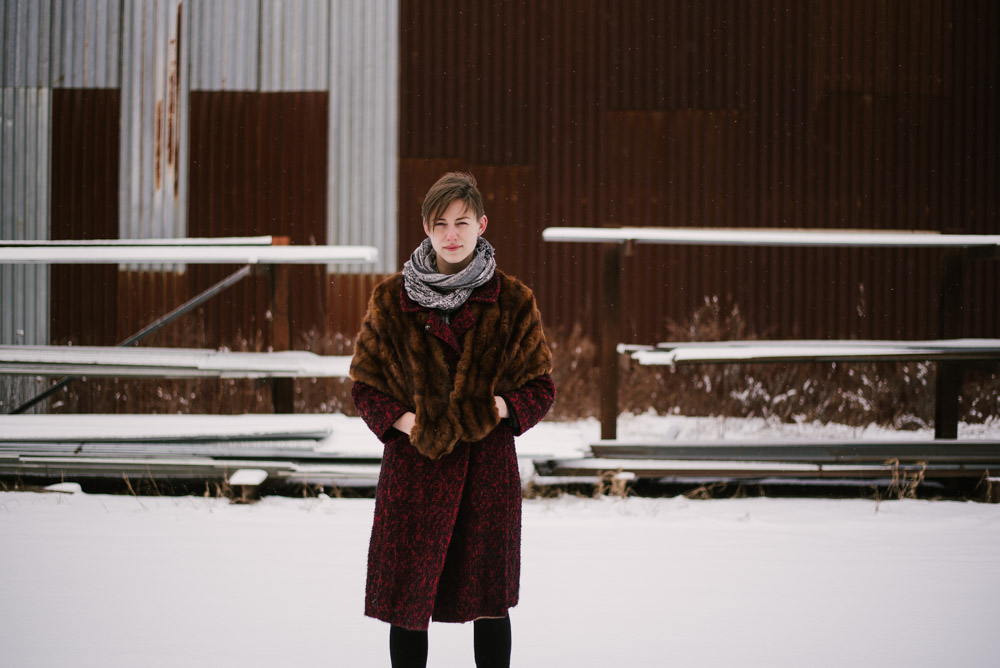 Meg is a fellow photographer, creative, and collector/lover of vintage cameras. She’s also an art educator and manager of Station One Center for the Arts of Lancaster, PA. Basically, she’s really cool! Meg and I met at a great spot in Lancaster with lots of rust and grit to create captivating portraits with a little bit of attitude. It snowed the night before our planned session, but that added a great touch. You can see the snow still falling in some of these shots. Thank you, Meg, for an awesome session and bearing the cold. You crushed it!