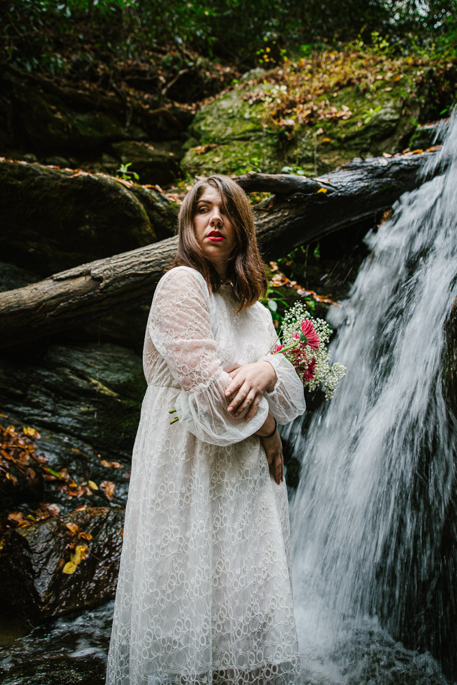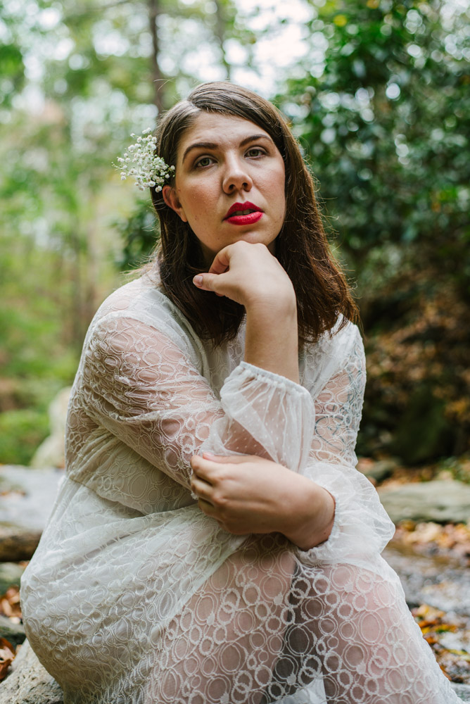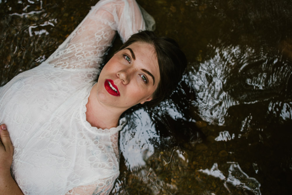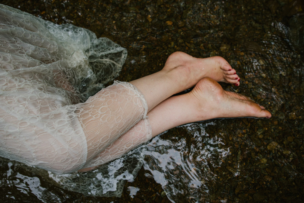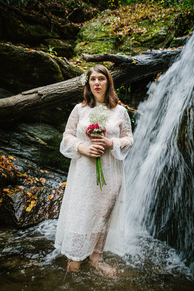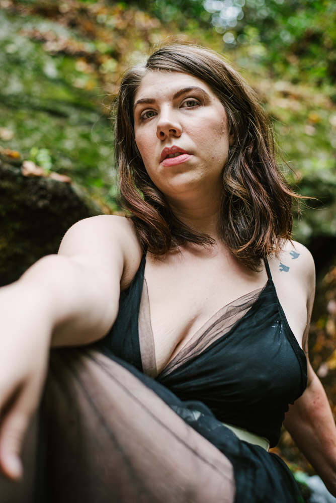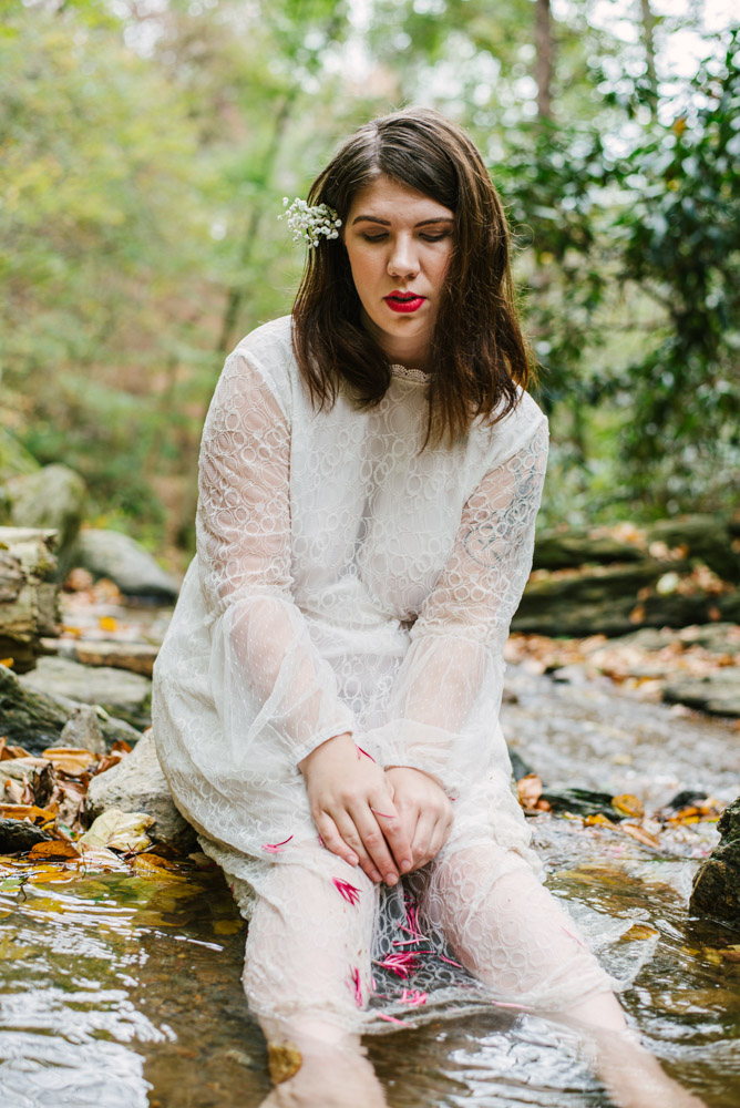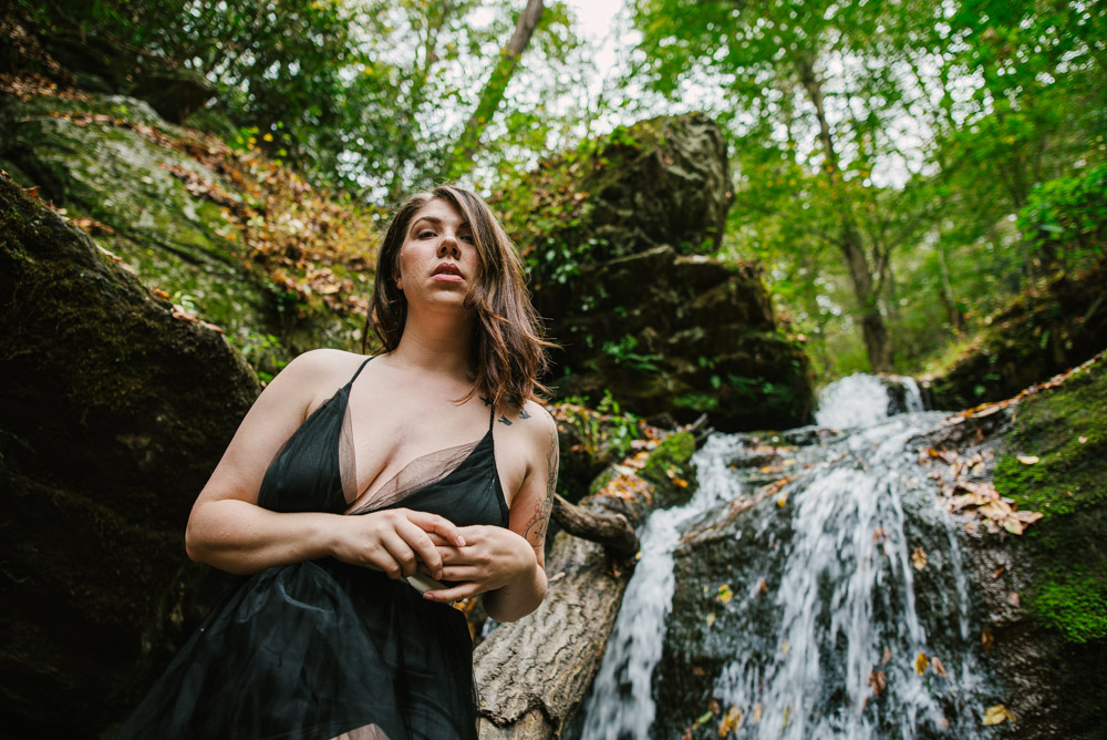 Miya is a mom of three young girls, a photographer, and a model based in York, PA. We both wanted to explore capturing portraits with a moody and conceptual feel. The grey skies and fallen colorful leaves helped to set the mood as Miya bravely got into the cold water on a chilly day!