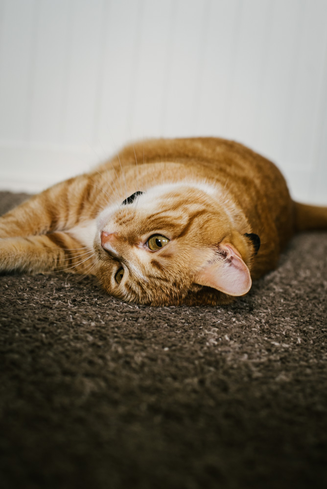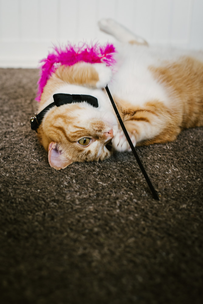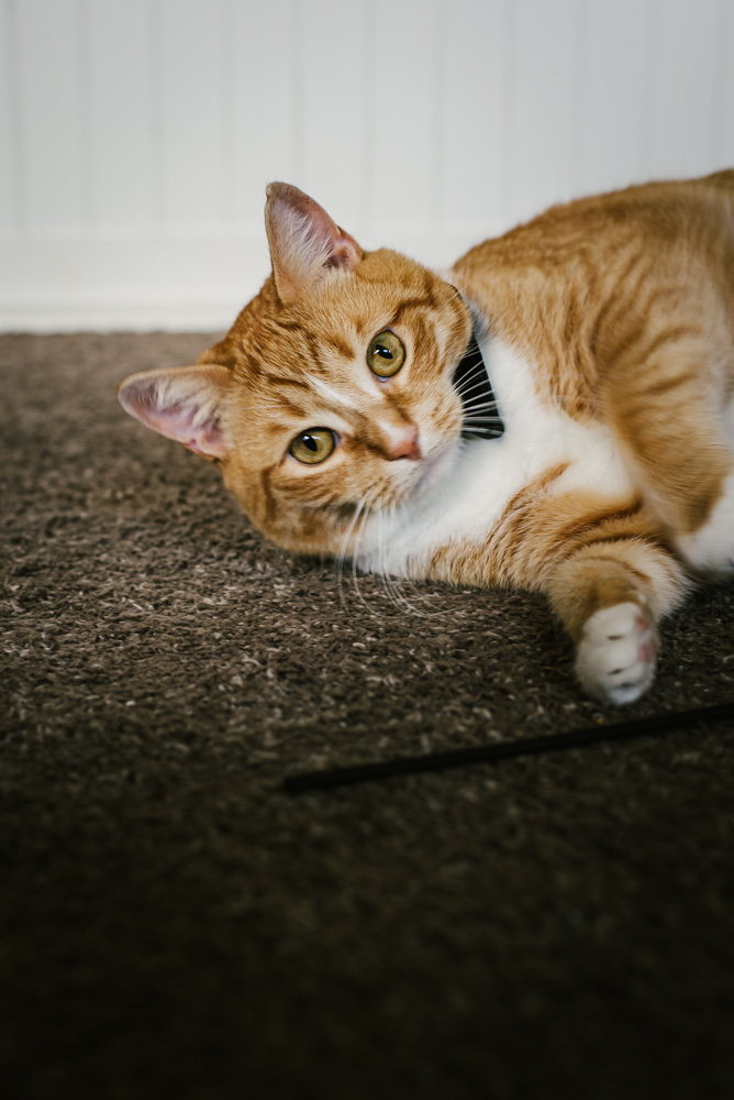 Sébastien is the younger brother. In true orange cat fashion he is a very energetic, playful, and gregarious kitty! His bouncy personality made it more challenging to get his portrait, but his true colors and personality shines in these portraits. He was enticed with a favorite toy and showed his belly for rubs.