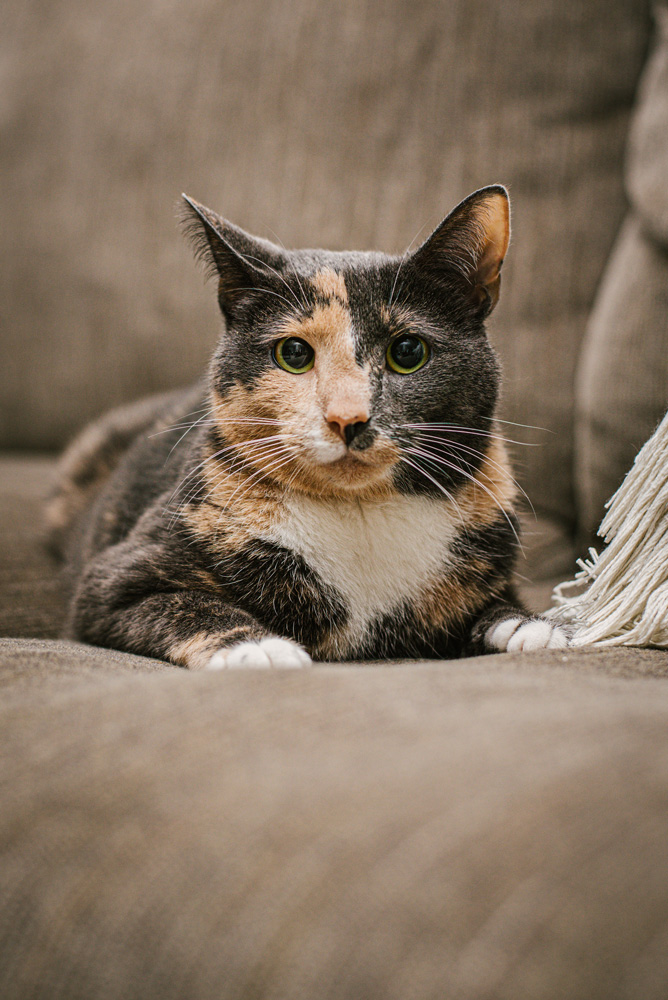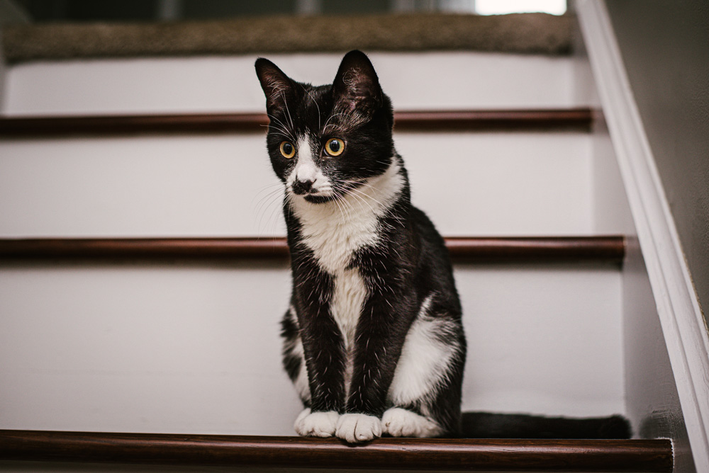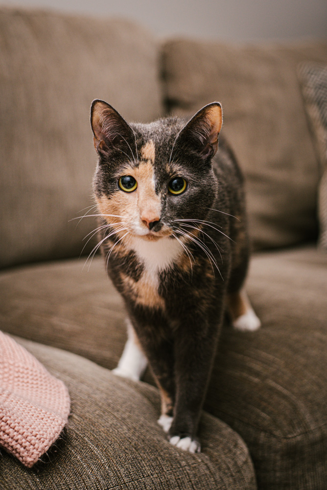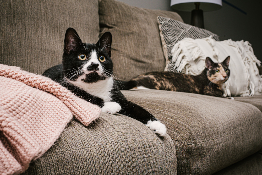 Peach (diluted tortoiseshell) and Peppa (bicolor “tuxedo”) are two rescued kitties lovingly cared for by cat lovers in Lancaster, PA. Peach, who is 3 years old, was rescued as a very young feral kitten, and Peppa, who is 7 months, was adopted from a litter of new kittens earlier in 2020. These two girls are super sweet and playful!