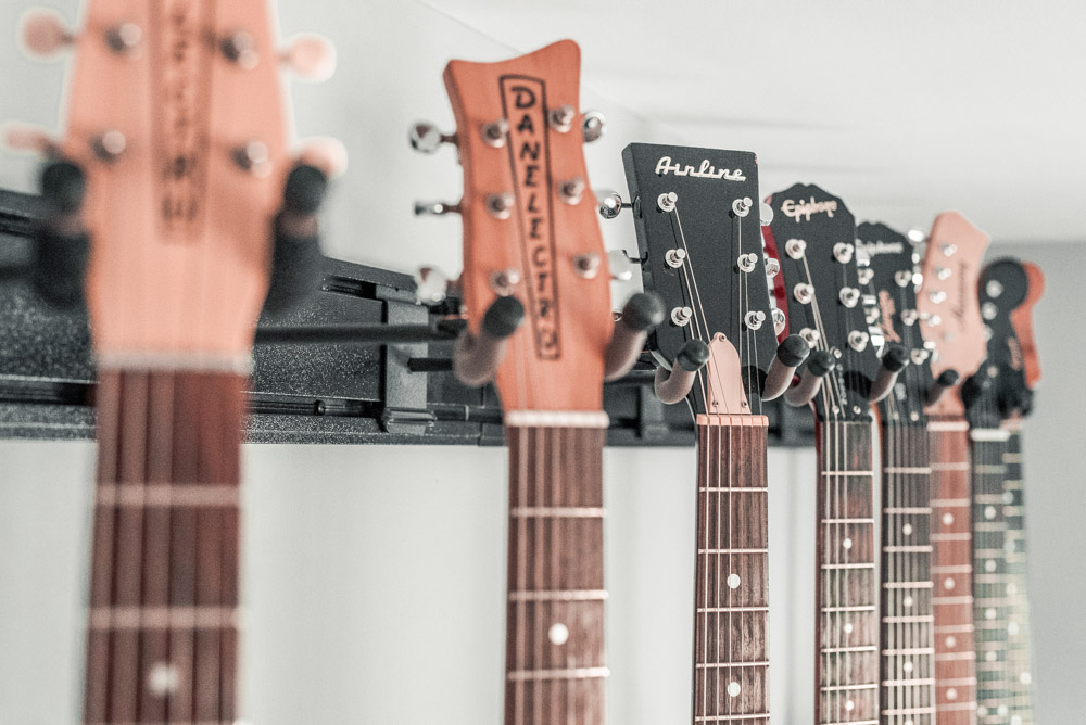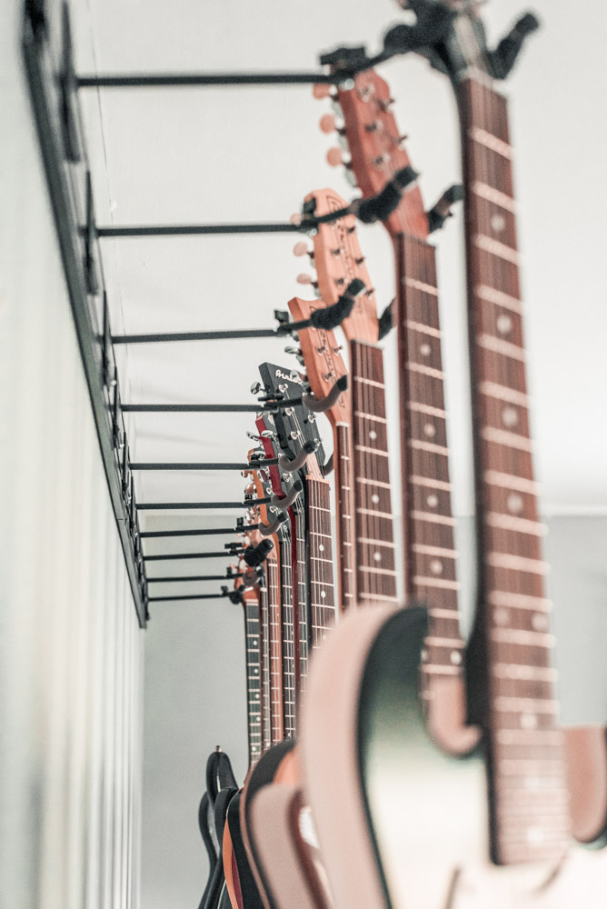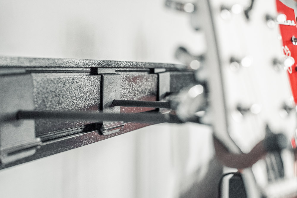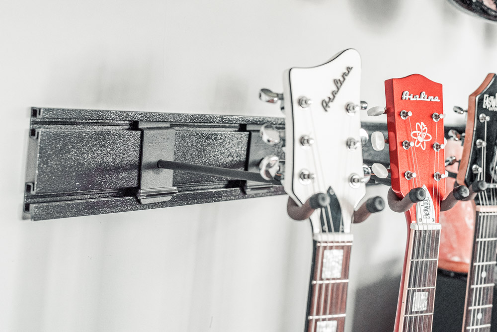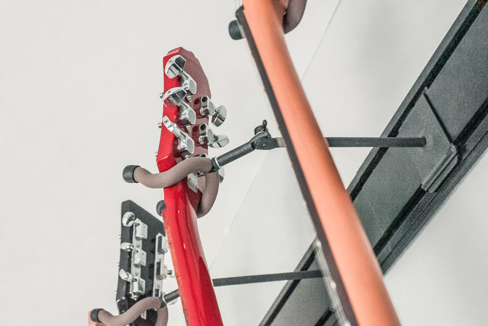 The assignment this time was to capture their 5 Guitar Hanger system. There are actually four of them shown here—hung two side-by-side in two rows. I made sure to capture them from all angles to show the true and full potential of this great display system.
