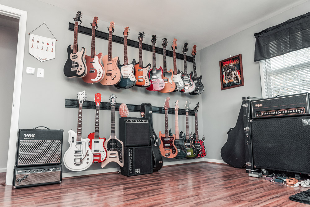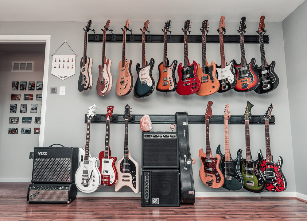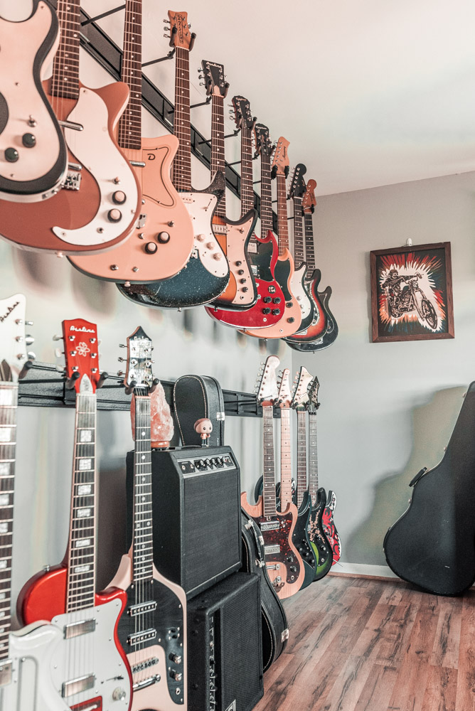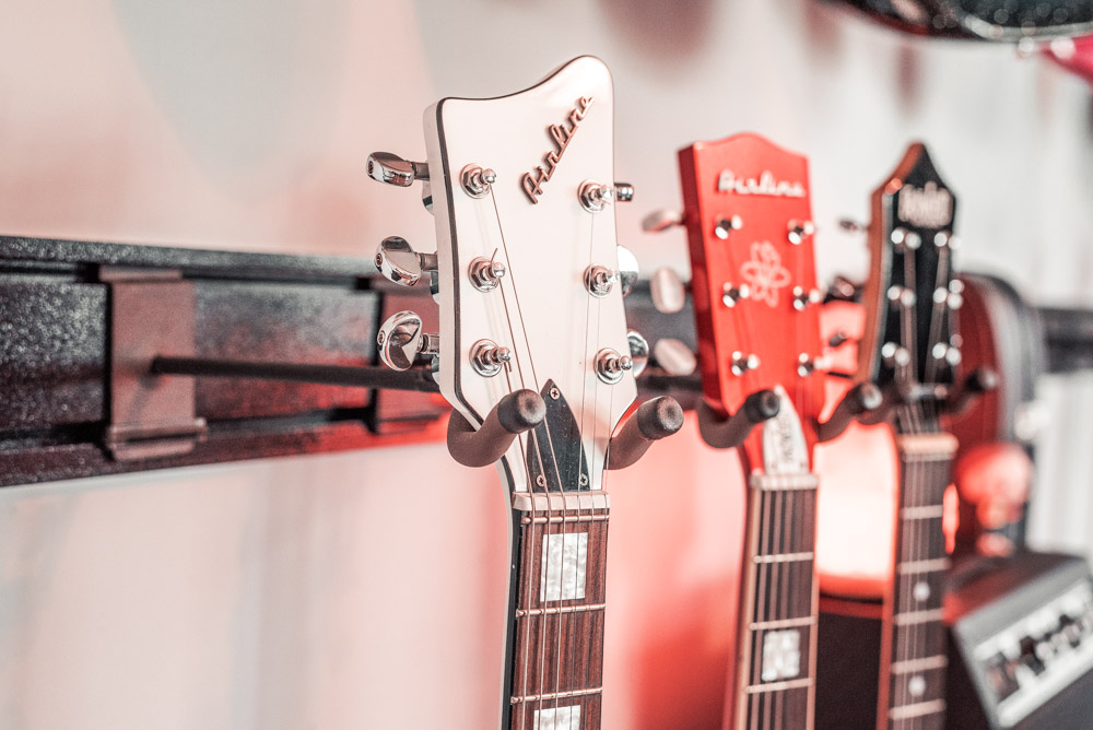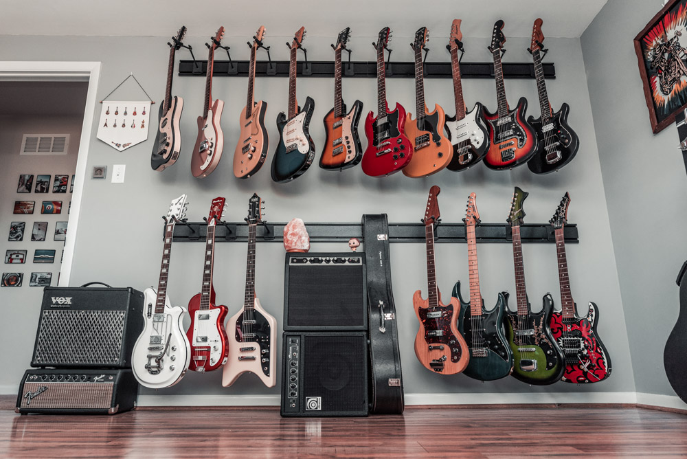 The assignment this time was to capture their 5 Guitar Hanger system. There are actually four of them shown here—hung two side-by-side in two rows. I made sure to capture them from all angles to show the true and full potential of this great display system.