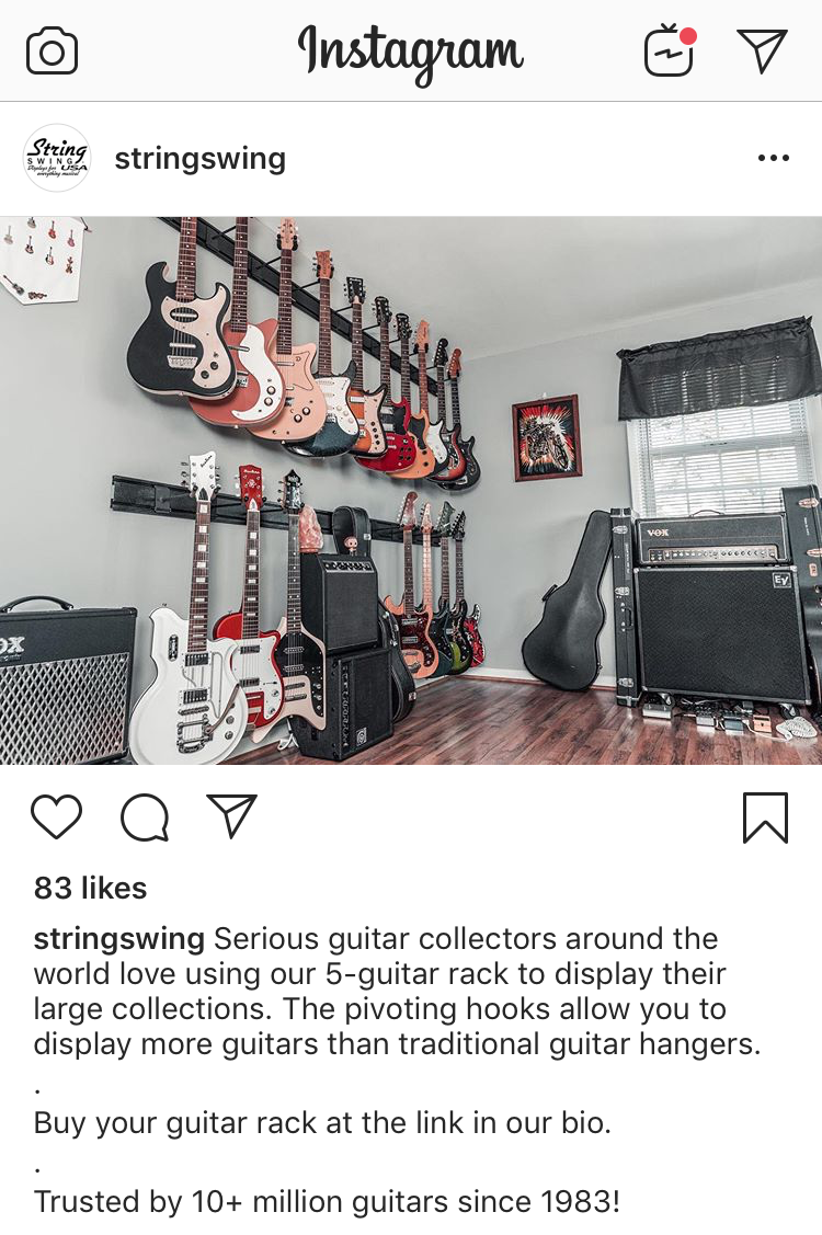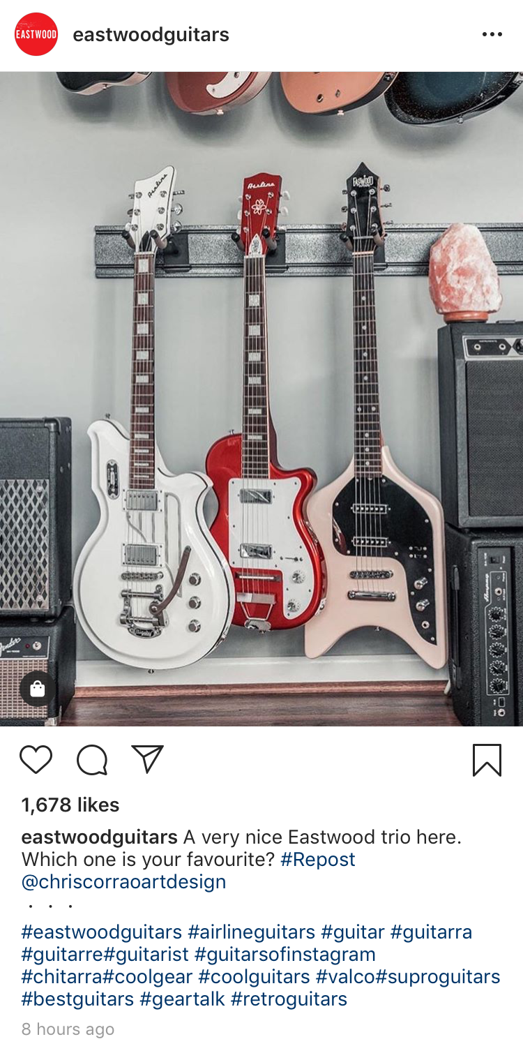 Check out how successful these photographs were for the String Swing and Eastwood Guitars Instagram marketing profiles.