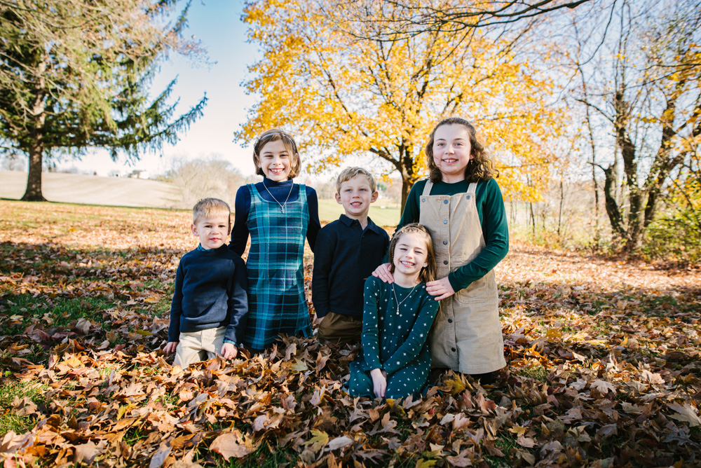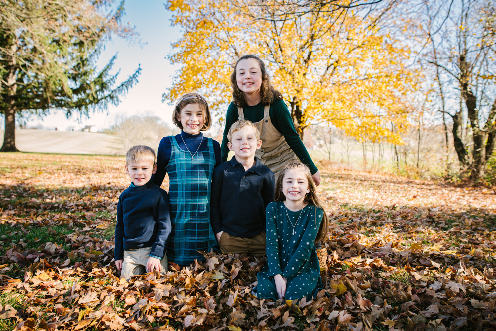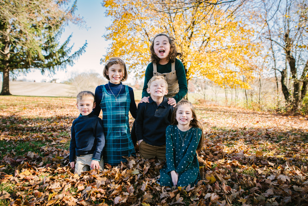 We ended our session together with some photos behind the church in a small tree grove. After being patient for close to an hour, the kids were bursting at the seams to run around outside in the leaves!