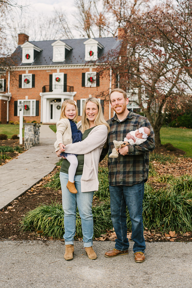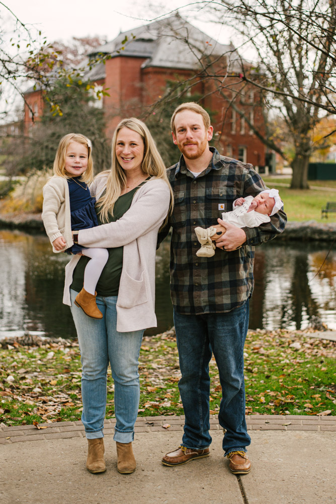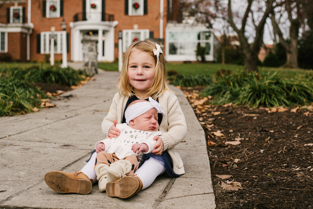 The Rineer family just welcomed their second daughter to the world. Lennon (or “Lemon” as her big sister says) was just shy of one month old when we gathered at the beautiful Millersville University campus for a family portrait session. Family photos are a great way to celebrate many occasions, especially the addition of a newborn.