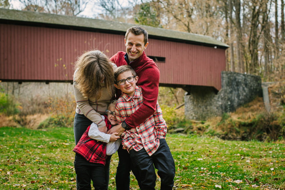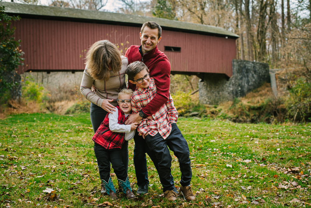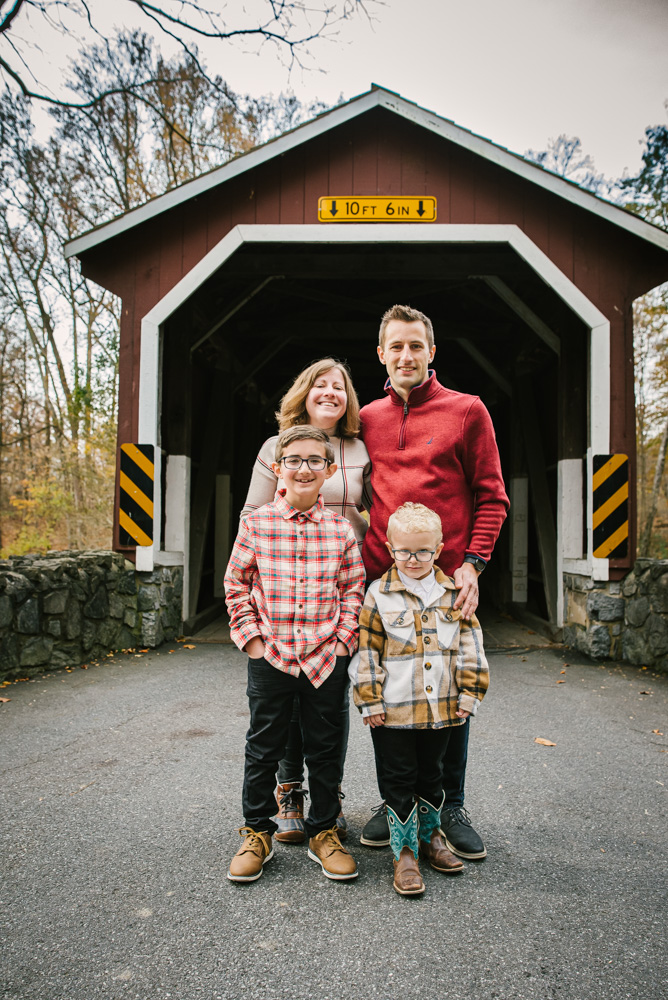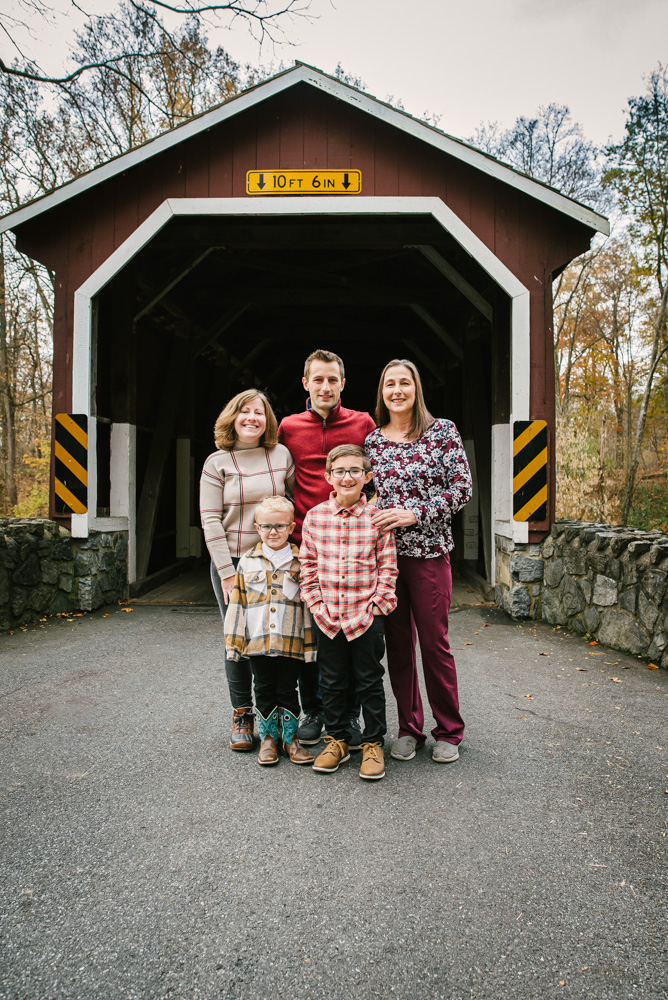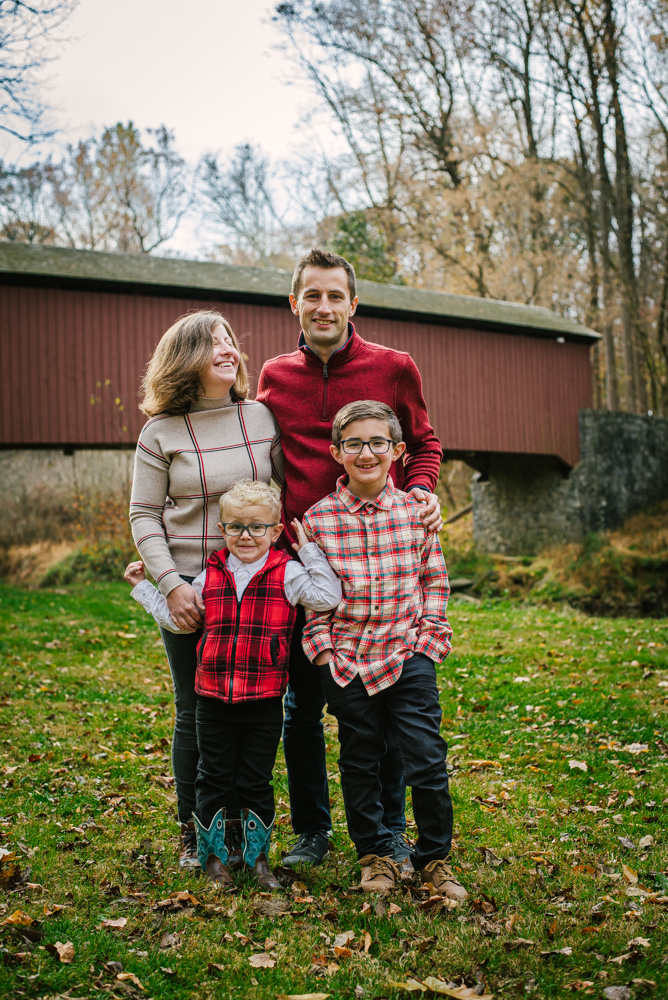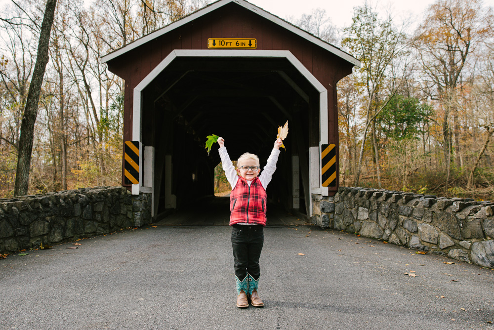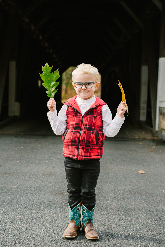 Three generations came together for family portraits by the Kurtz’s Mill Covered Bridge in Lancaster County Park. It was a beautiful Sunday is late fall with the leaves still hanging on to their branches – and Jack excitedly showed off a couple that had fallen!