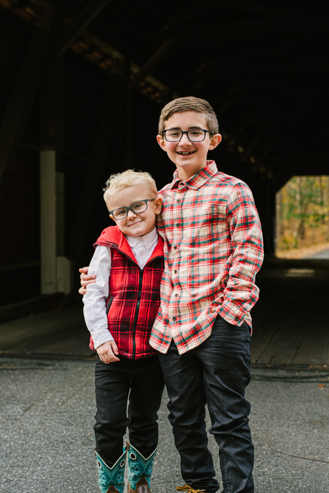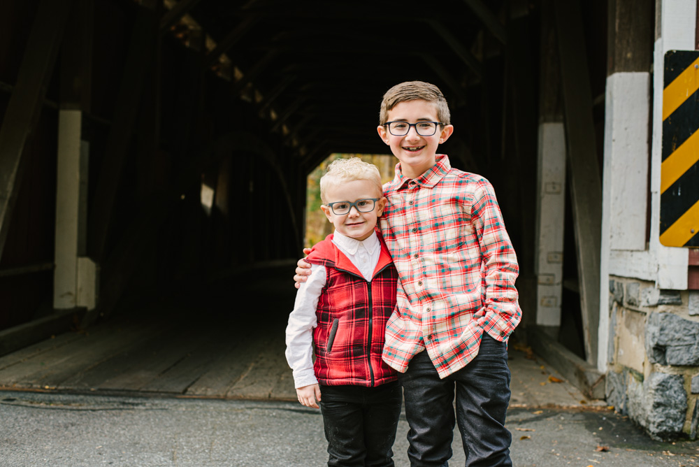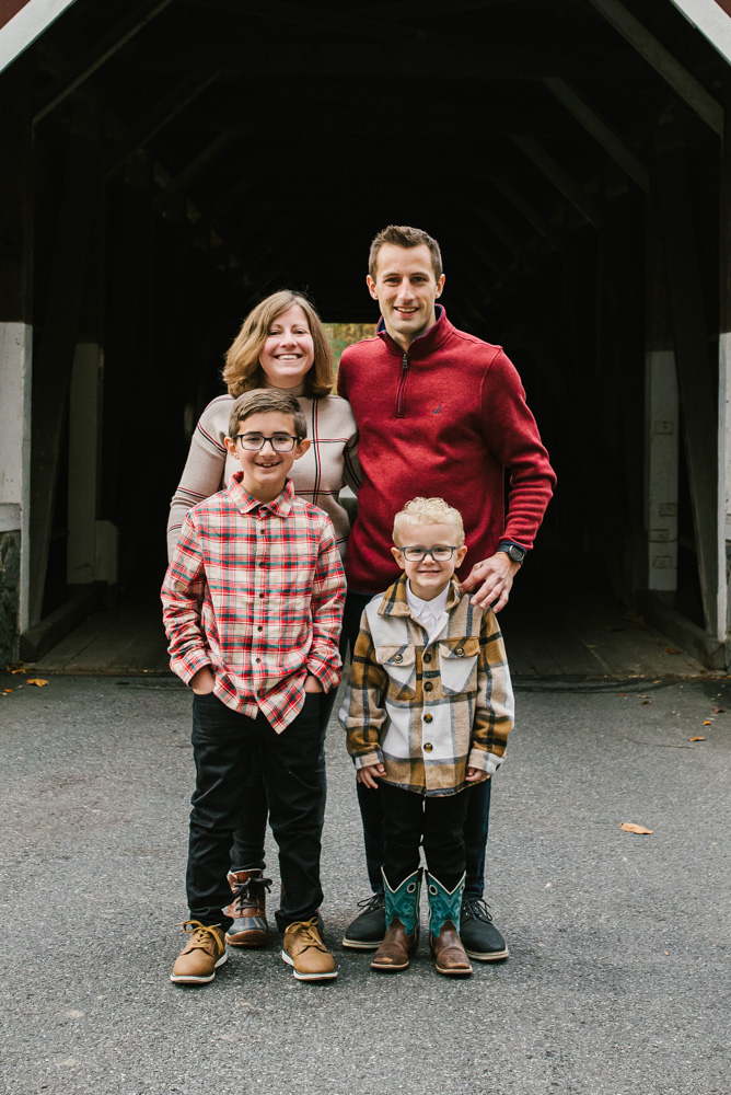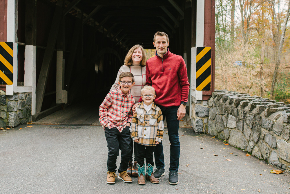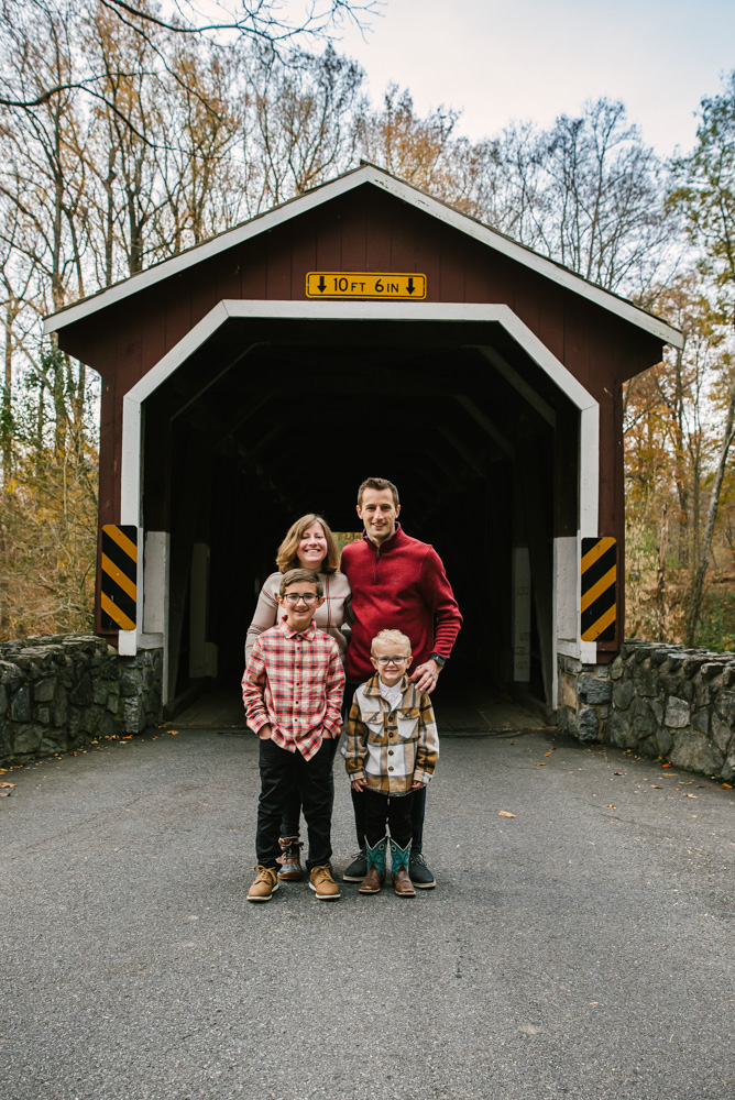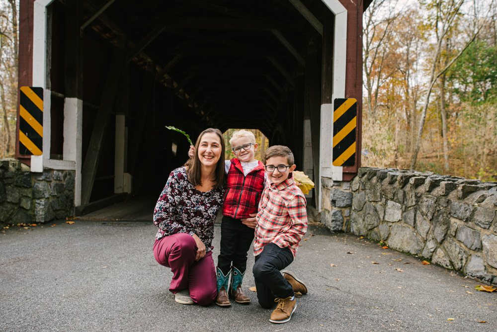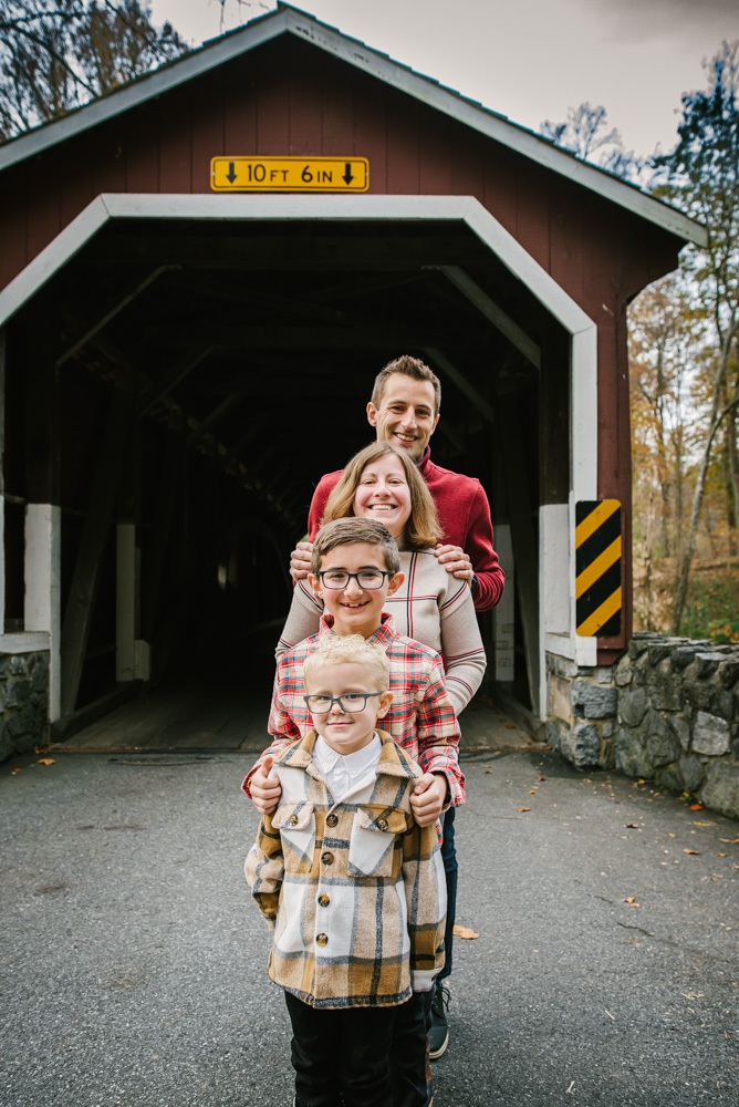 Three generations came together for family portraits by the Kurtz’s Mill Covered Bridge in Lancaster County Park. It was a beautiful Sunday is late fall with the leaves still hanging on to their branches – and Jack excitedly showed off a couple that had fallen!