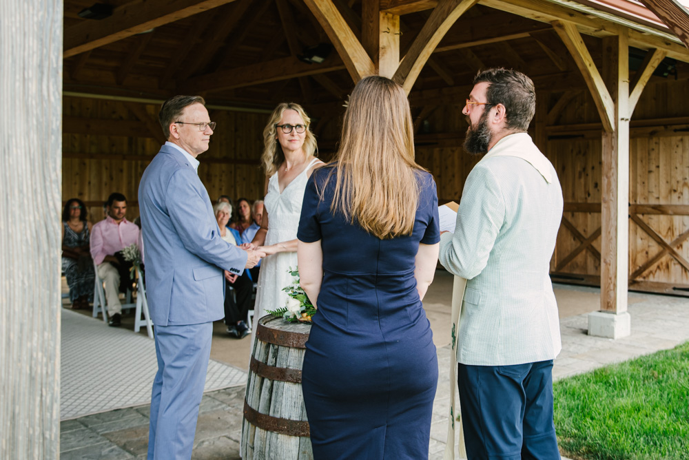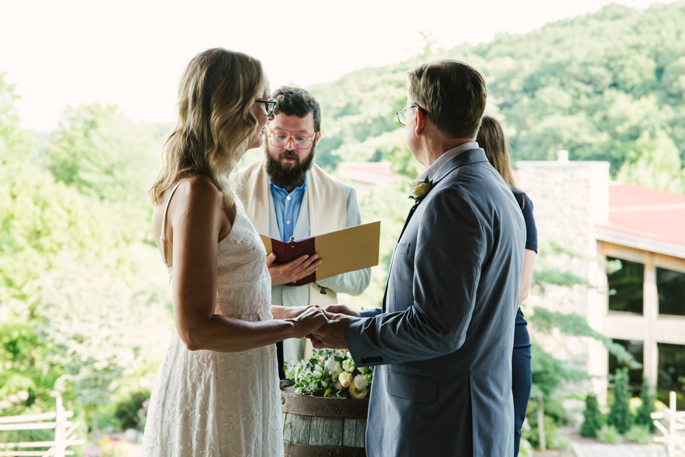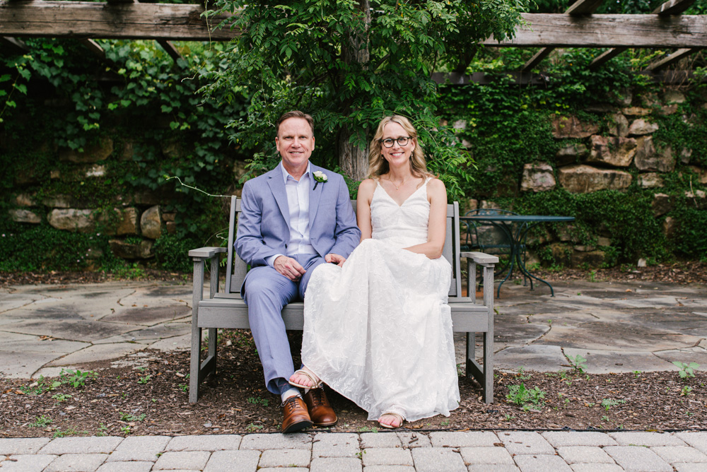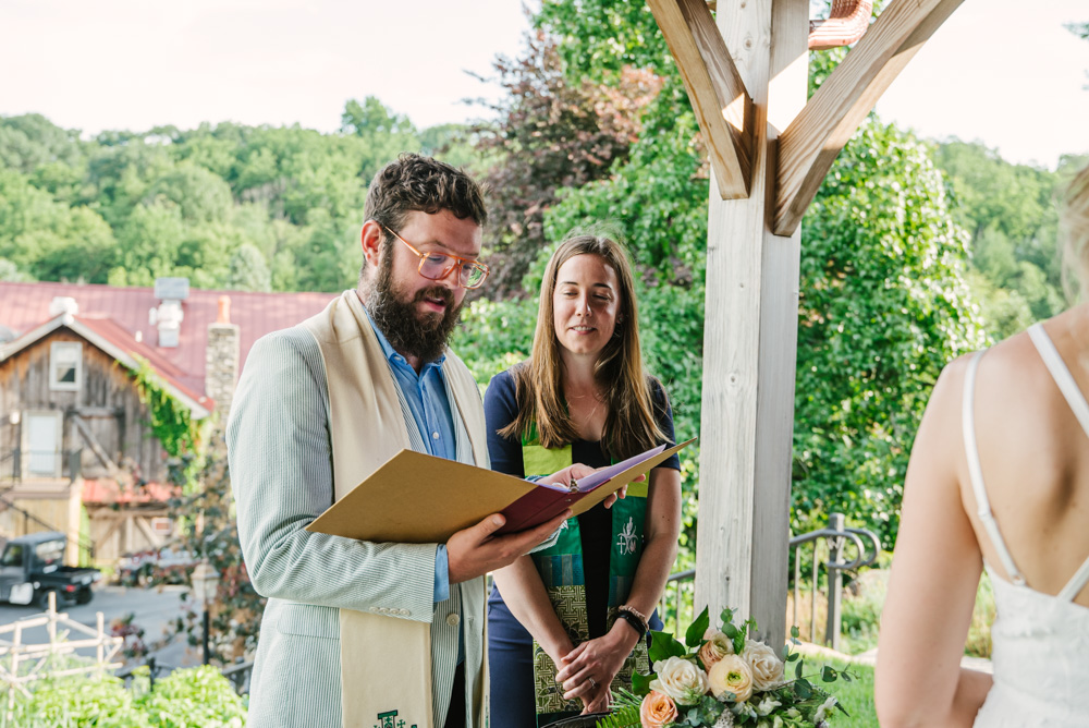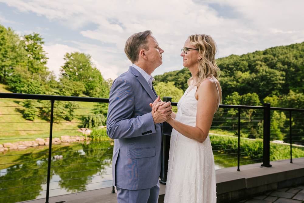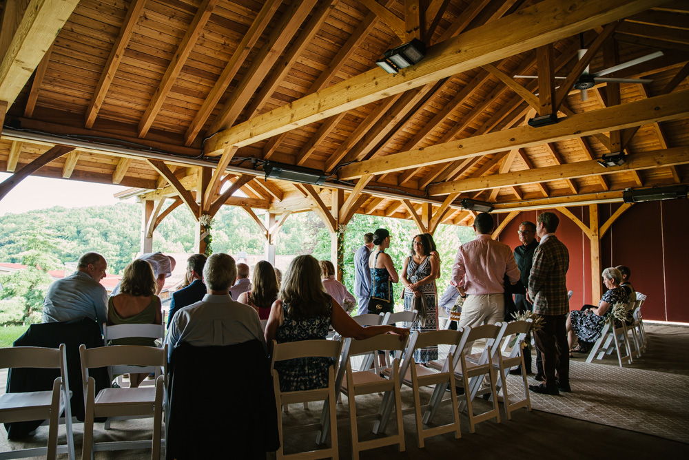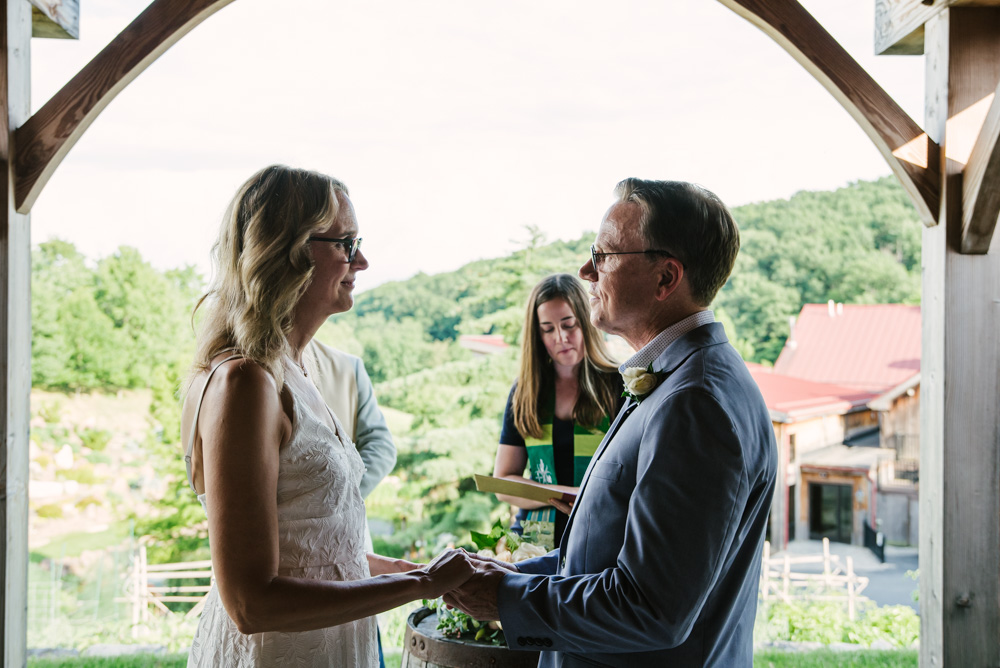 Heather and David had a brief and relaxed ceremony in Glasbern’s new outdoor pavilion. The site sits atop a beautiful garden and the altar overlooks the grounds, including the picturesque Glasloft building and large pond. Before the bride’s arrival, David mingled with the guests who were thrilled for the pair and in great spirits. The couple was married by Heather’s dear and long-time friends. The couple shared heartfelt vows they wrote to each other while David’s brother recorded the ceremony for their father in Australia to watch.