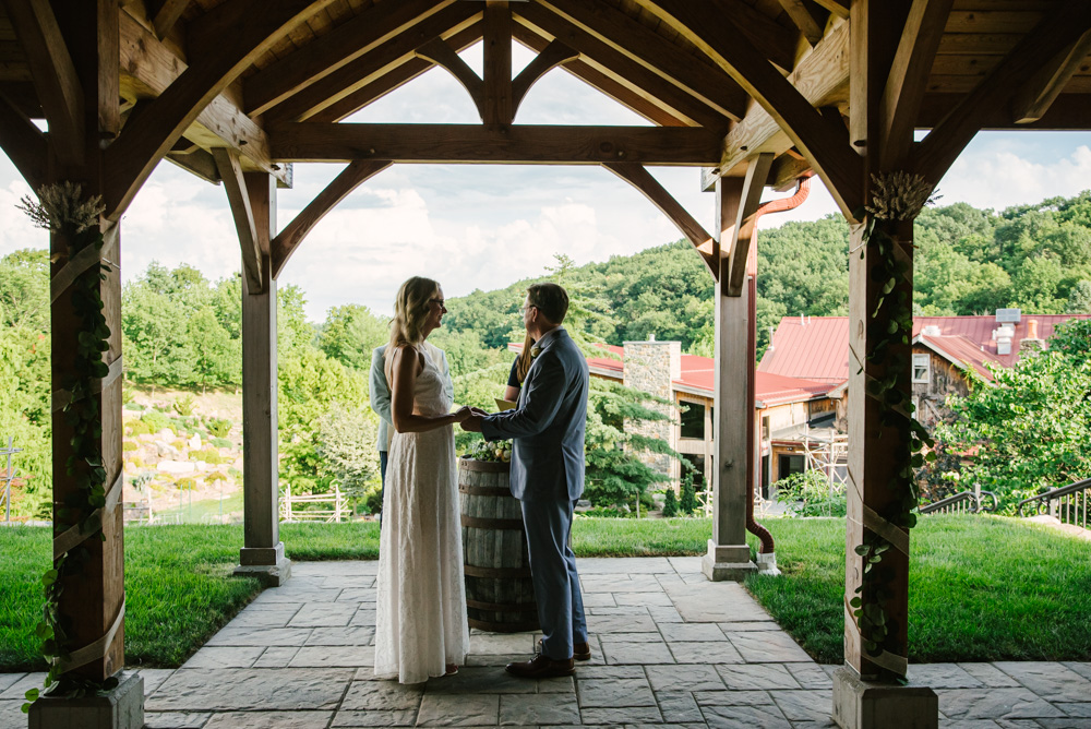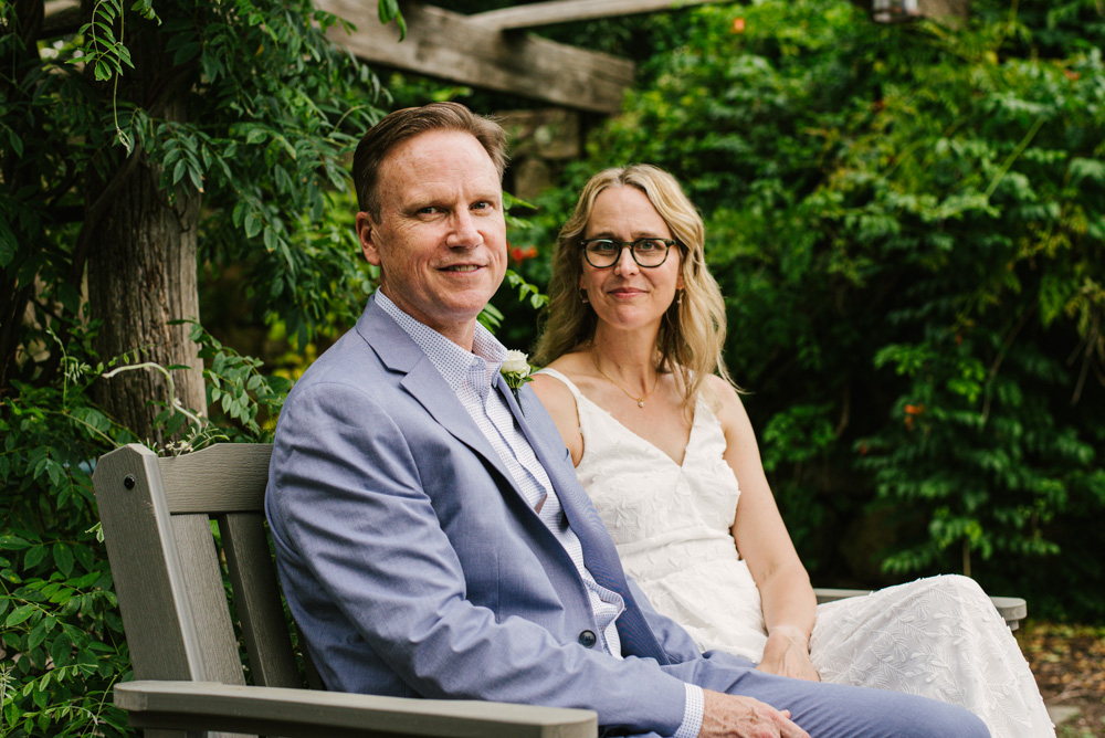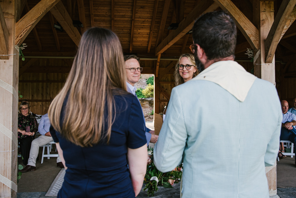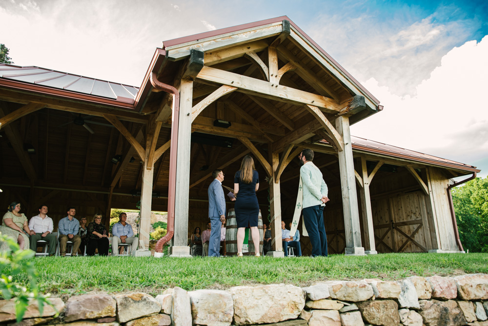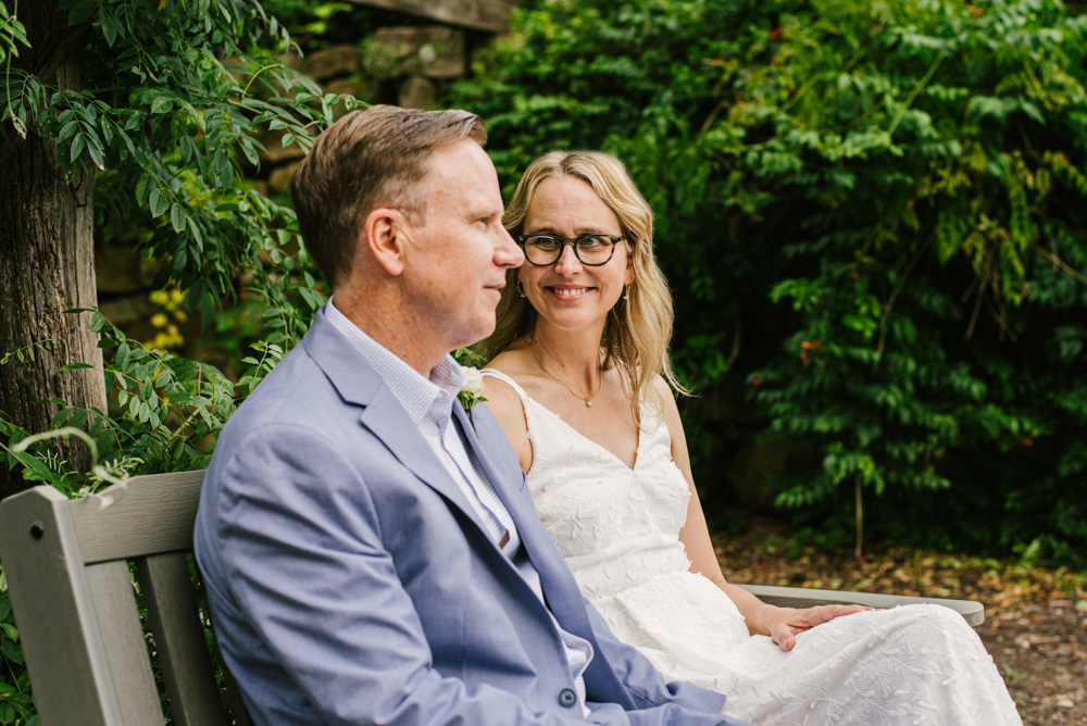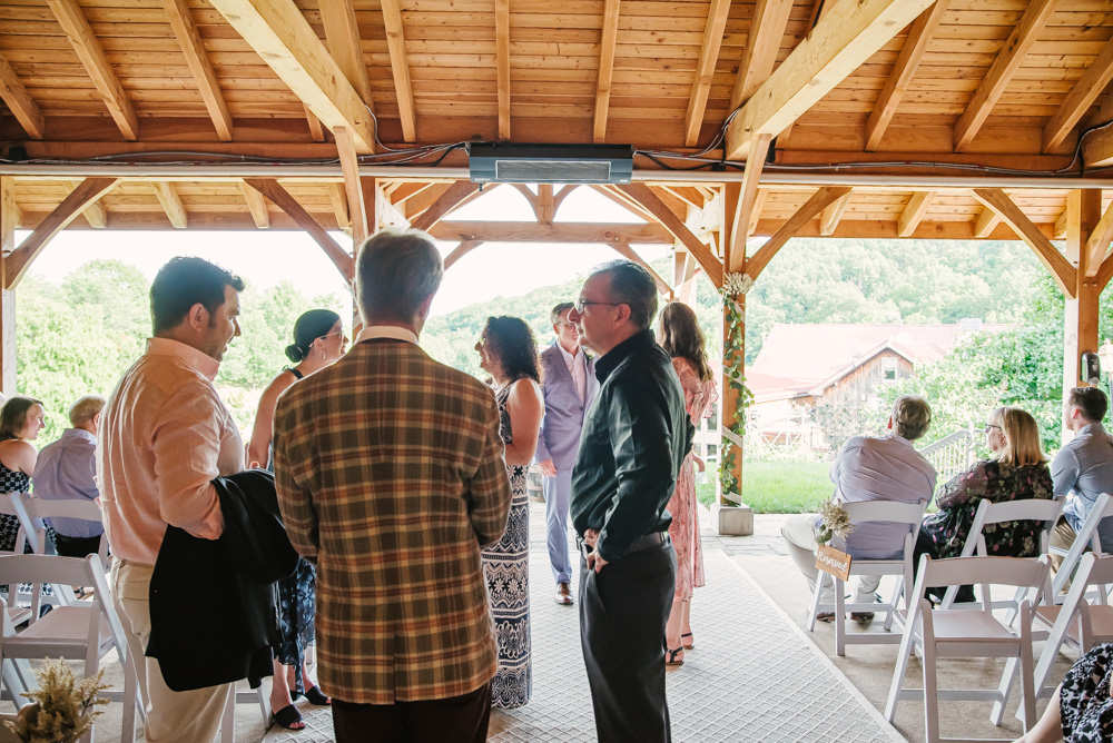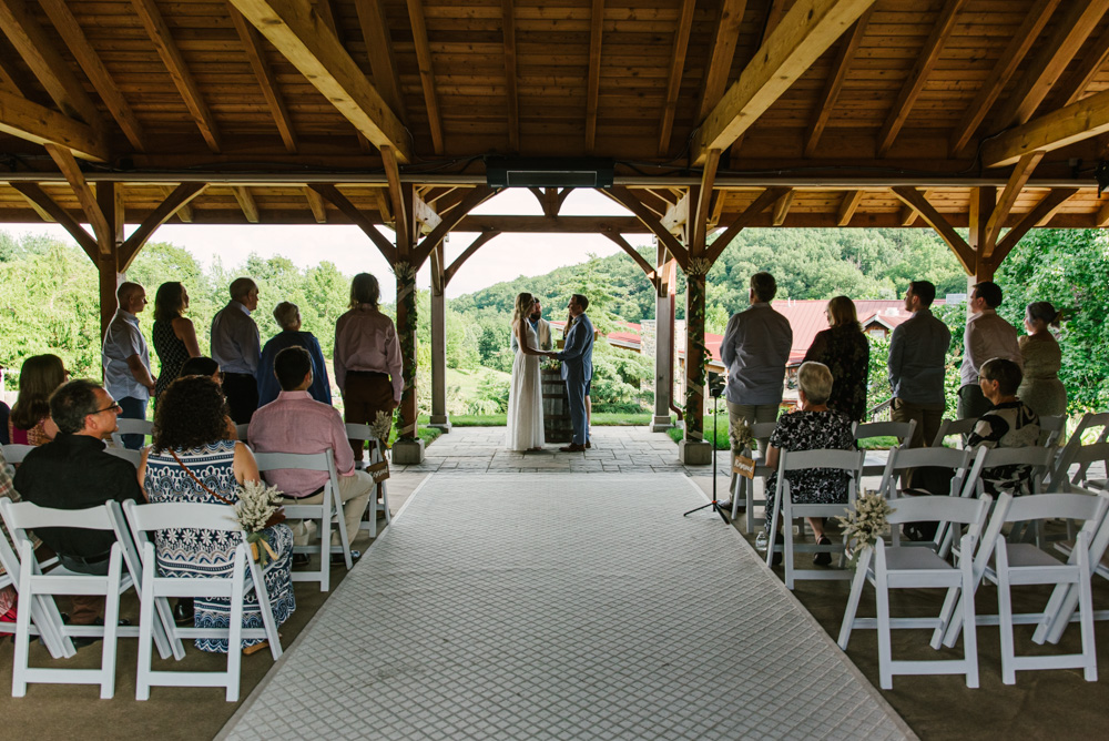 Heather and David had a brief and relaxed ceremony in Glasbern’s new outdoor pavilion. The site sits atop a beautiful garden and the altar overlooks the grounds, including the picturesque Glasloft building and large pond. Before the bride’s arrival, David mingled with the guests who were thrilled for the pair and in great spirits. The couple was married by Heather’s dear and long-time friends. The couple shared heartfelt vows they wrote to each other while David’s brother recorded the ceremony for their father in Australia to watch.