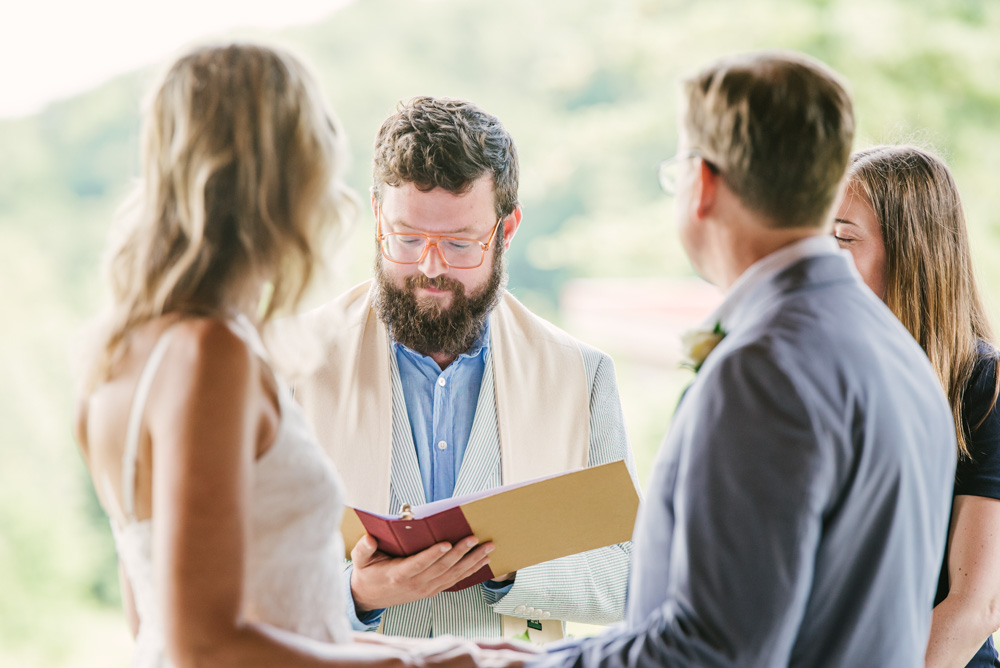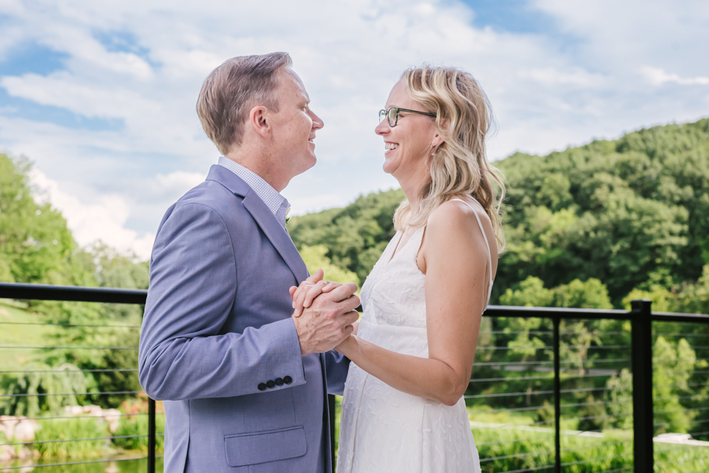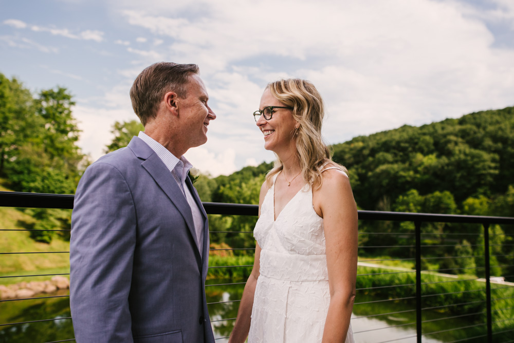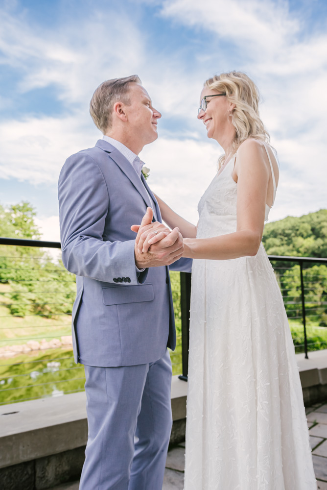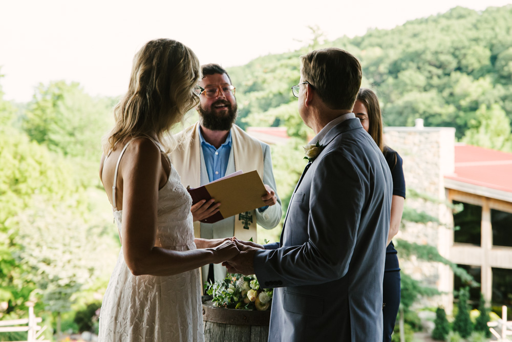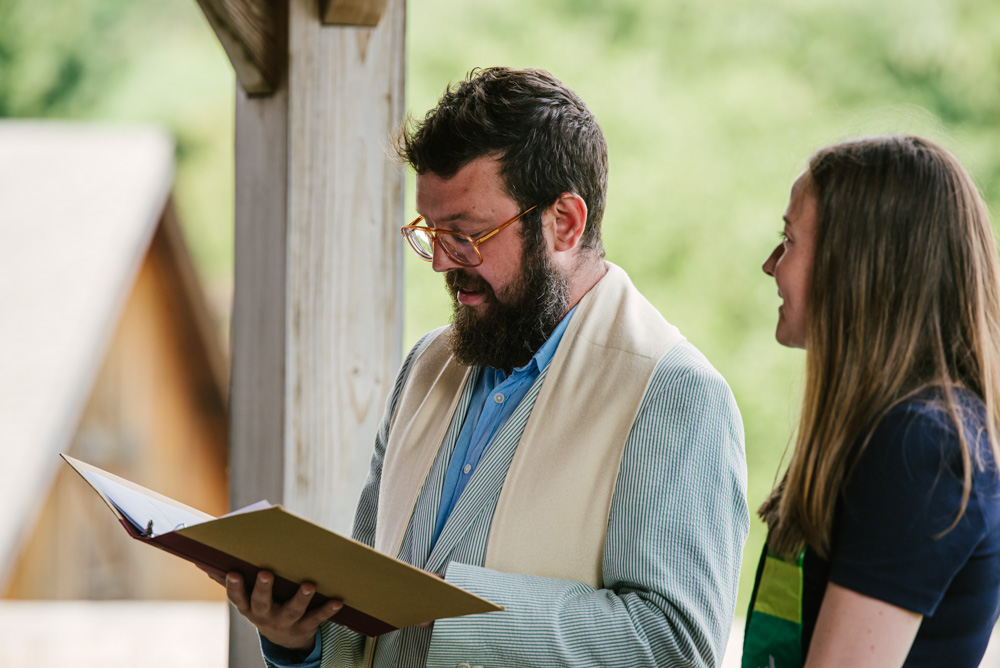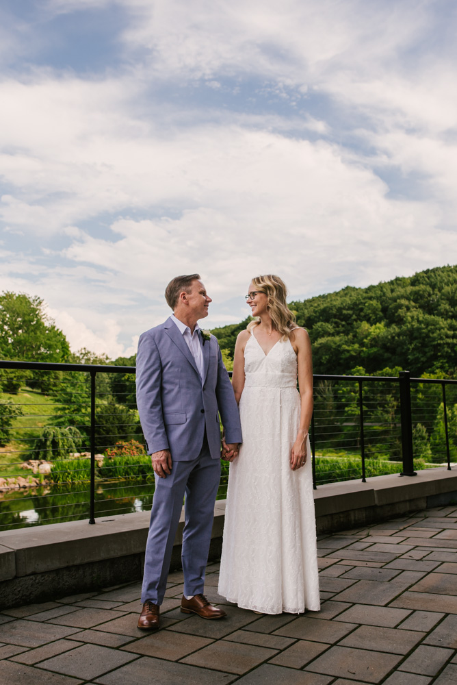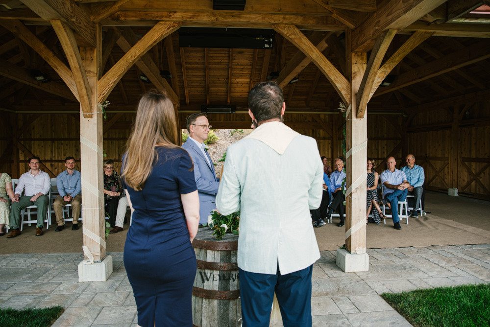 Heather and David had a brief and relaxed ceremony in Glasbern’s new outdoor pavilion. The site sits atop a beautiful garden and the altar overlooks the grounds, including the picturesque Glasloft building and large pond. Before the bride’s arrival, David mingled with the guests who were thrilled for the pair and in great spirits. The couple was married by Heather’s dear and long-time friends. The couple shared heartfelt vows they wrote to each other while David’s brother recorded the ceremony for their father in Australia to watch.