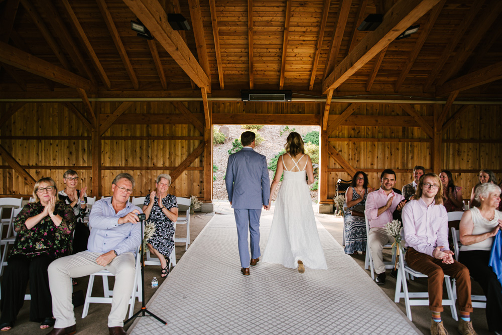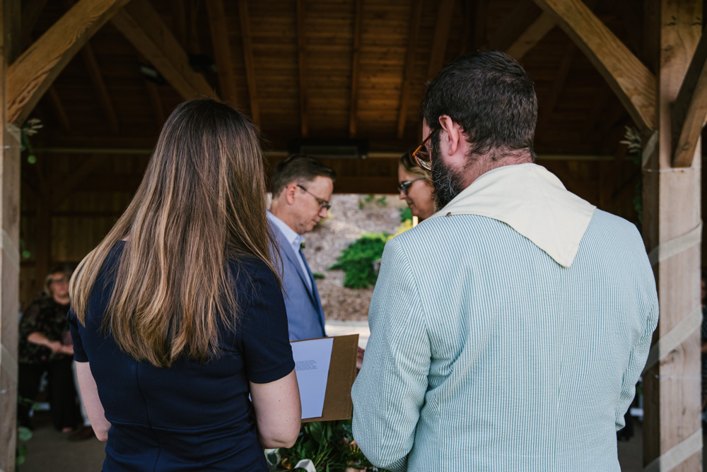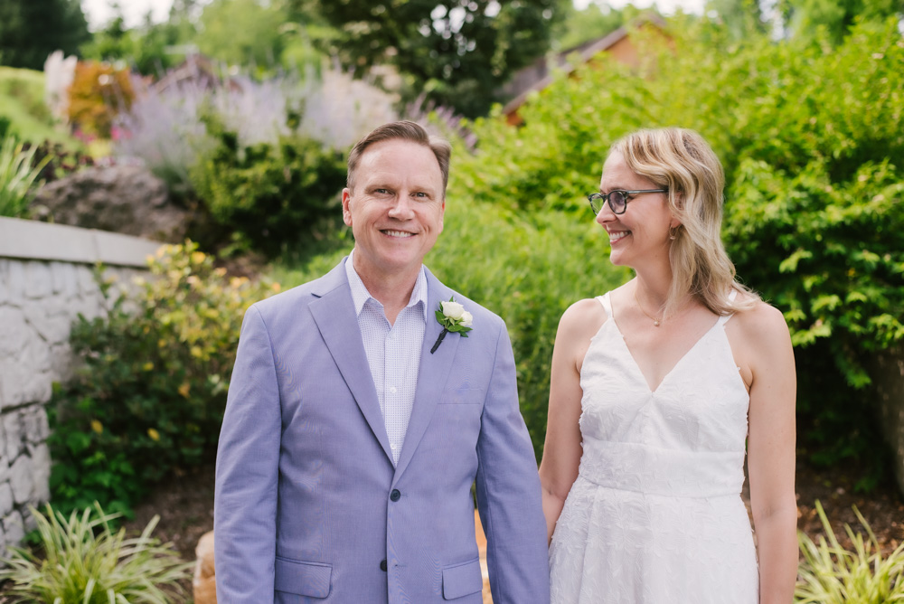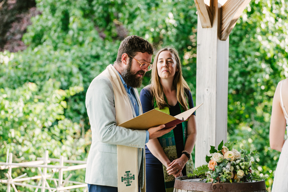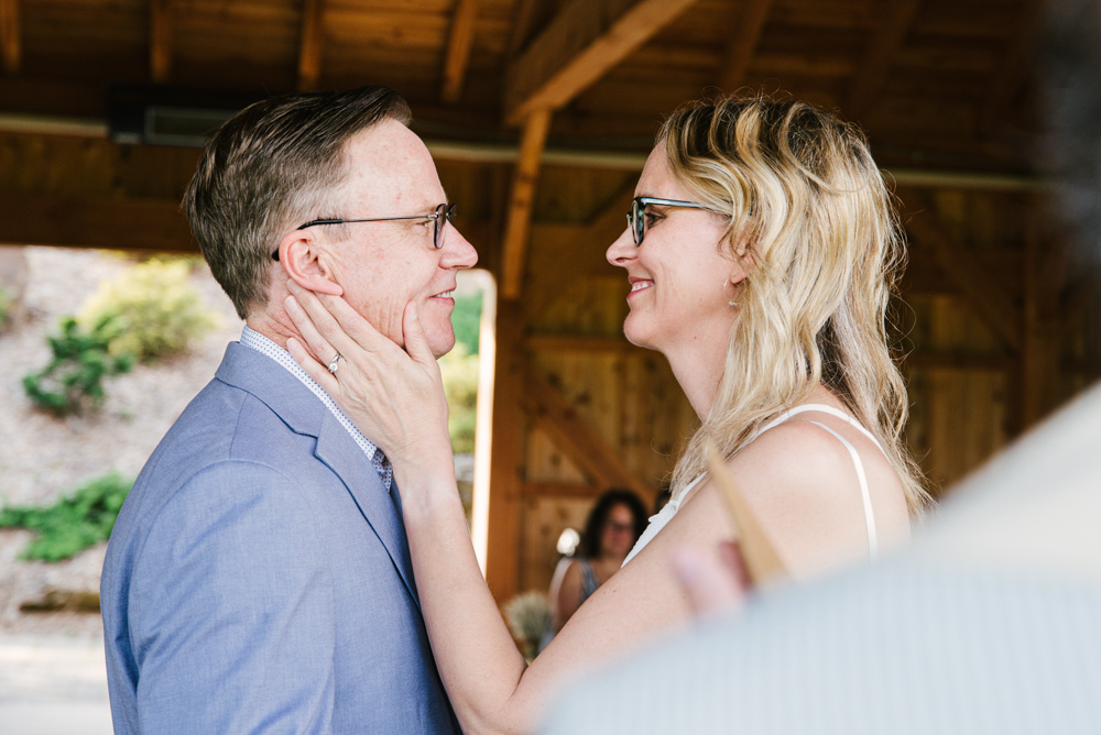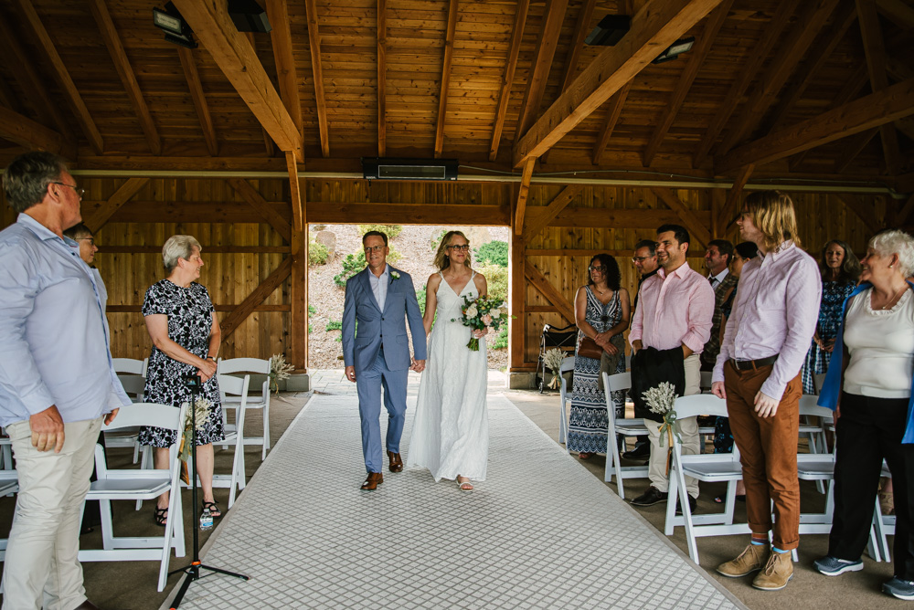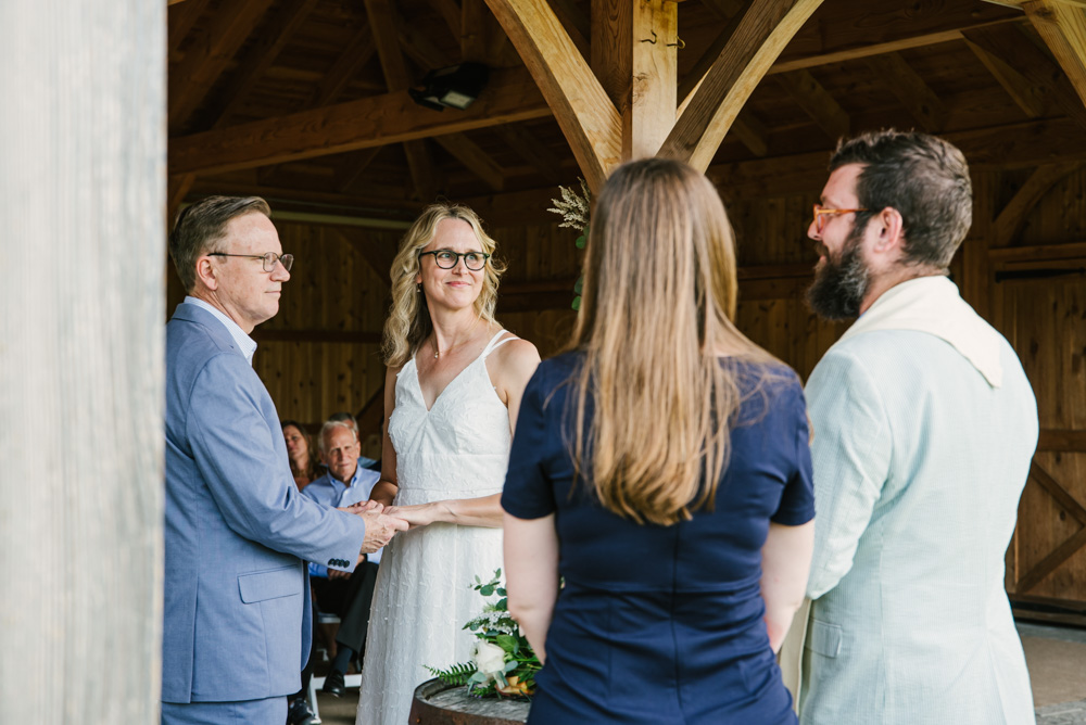 Heather and David had a brief and relaxed ceremony in Glasbern’s new outdoor pavilion. The site sits atop a beautiful garden and the altar overlooks the grounds, including the picturesque Glasloft building and large pond. Before the bride’s arrival, David mingled with the guests who were thrilled for the pair and in great spirits. The couple was married by Heather’s dear and long-time friends. The couple shared heartfelt vows they wrote to each other while David’s brother recorded the ceremony for their father in Australia to watch.