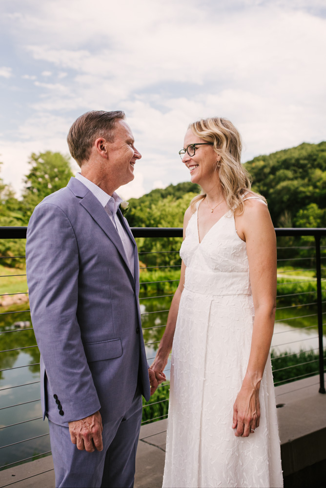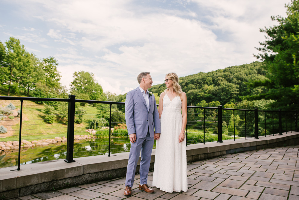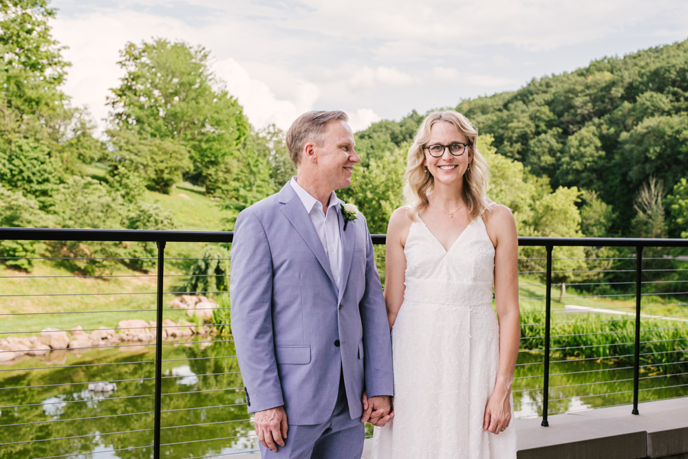 The ceremony was followed by portraits of the bride and groom with their loved ones. These photos were taken outside on the Glasloft patio which overlooked a beautiful pond.