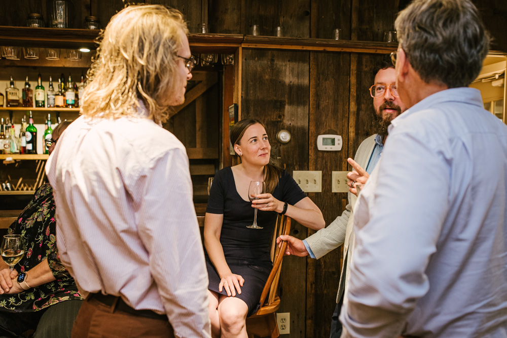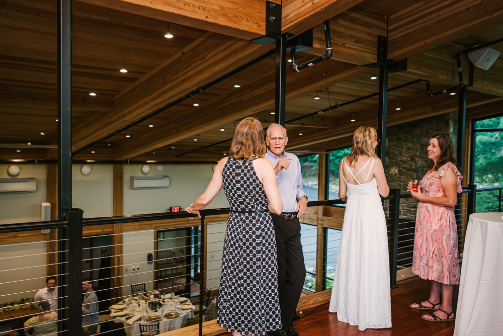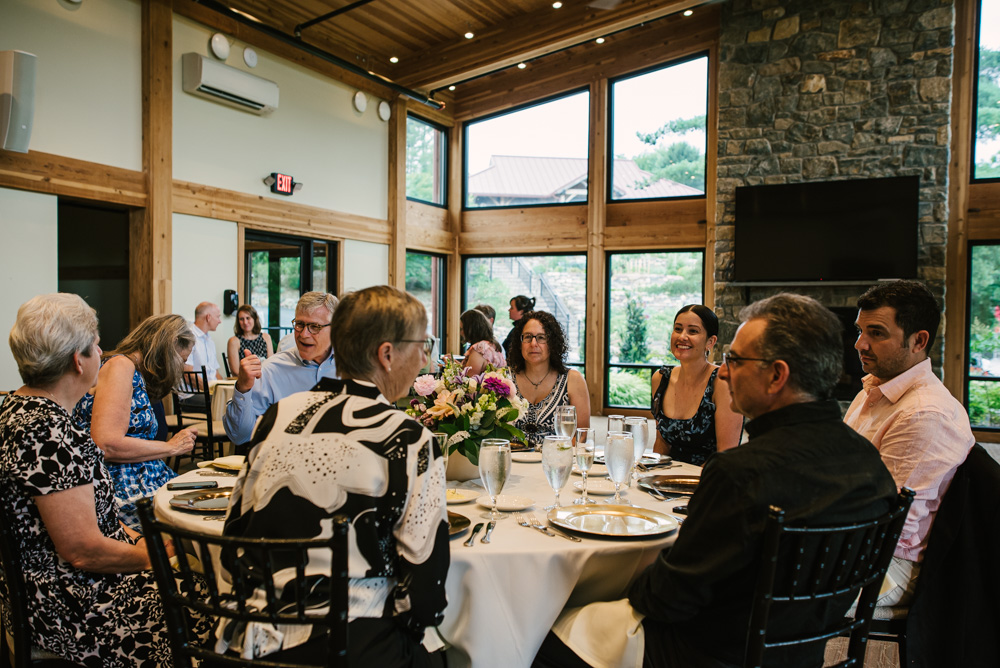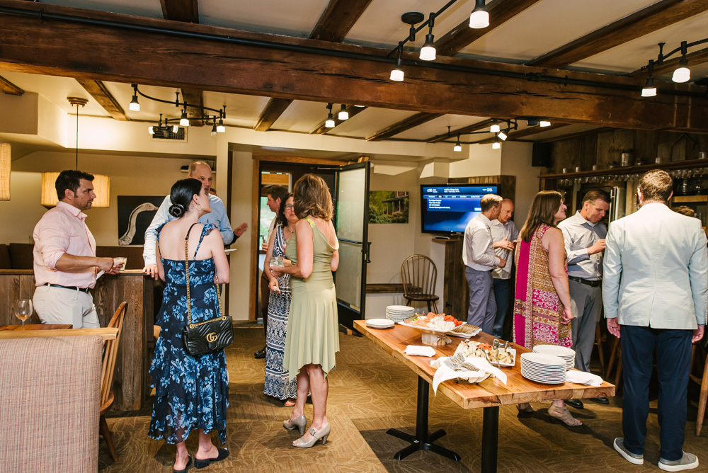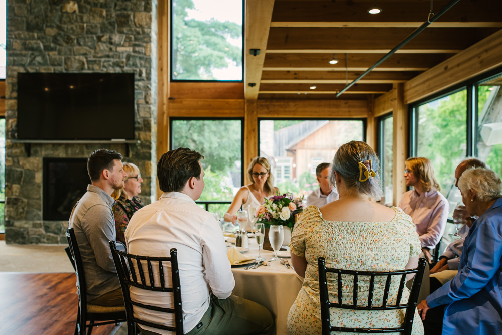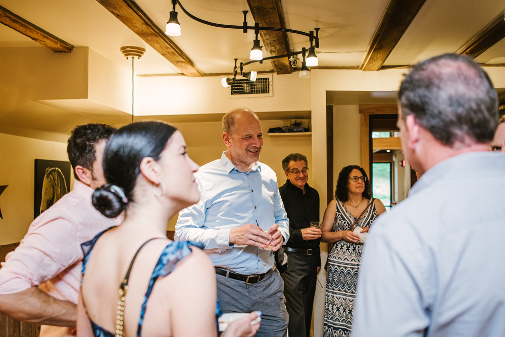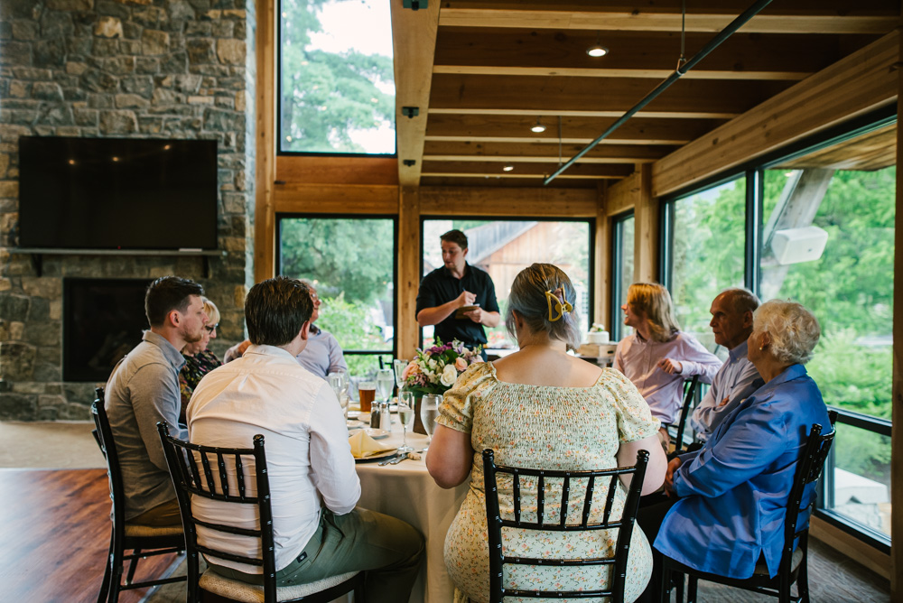 Guests gather in the Glasloft for the reception to celebrate the just-married couple. Drinks were enjoyed in the pub before dinner which was kicked of with words of thanks and a toast from Heather and David.