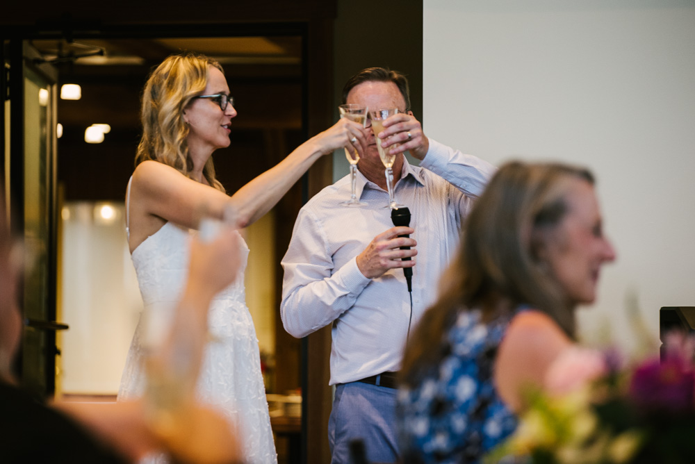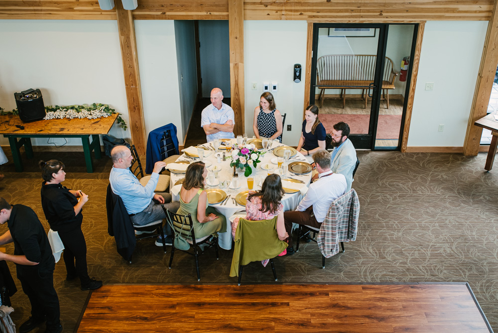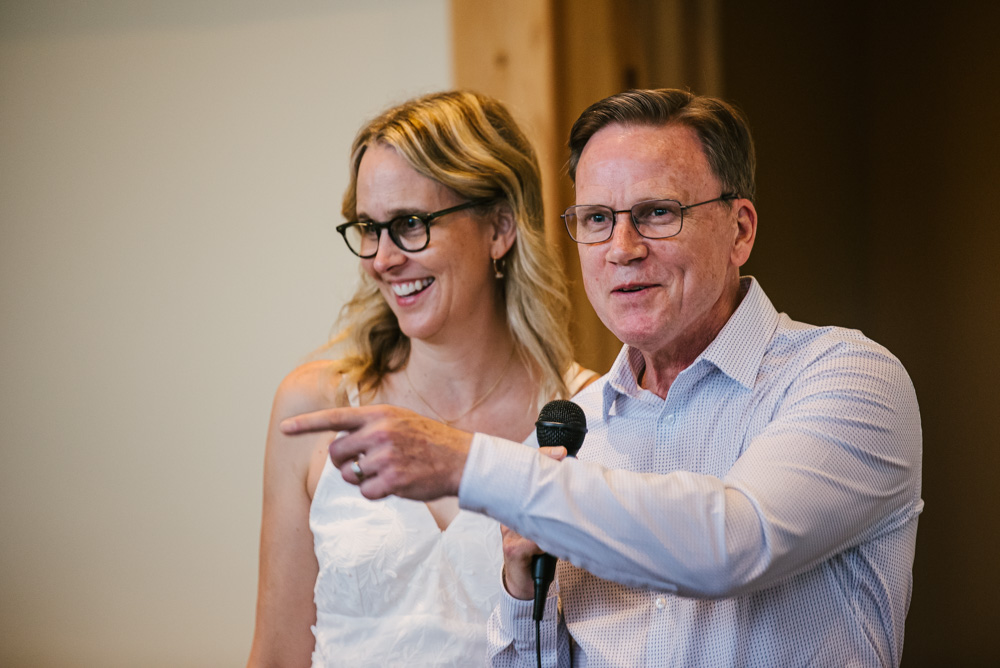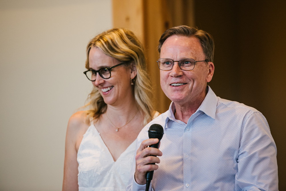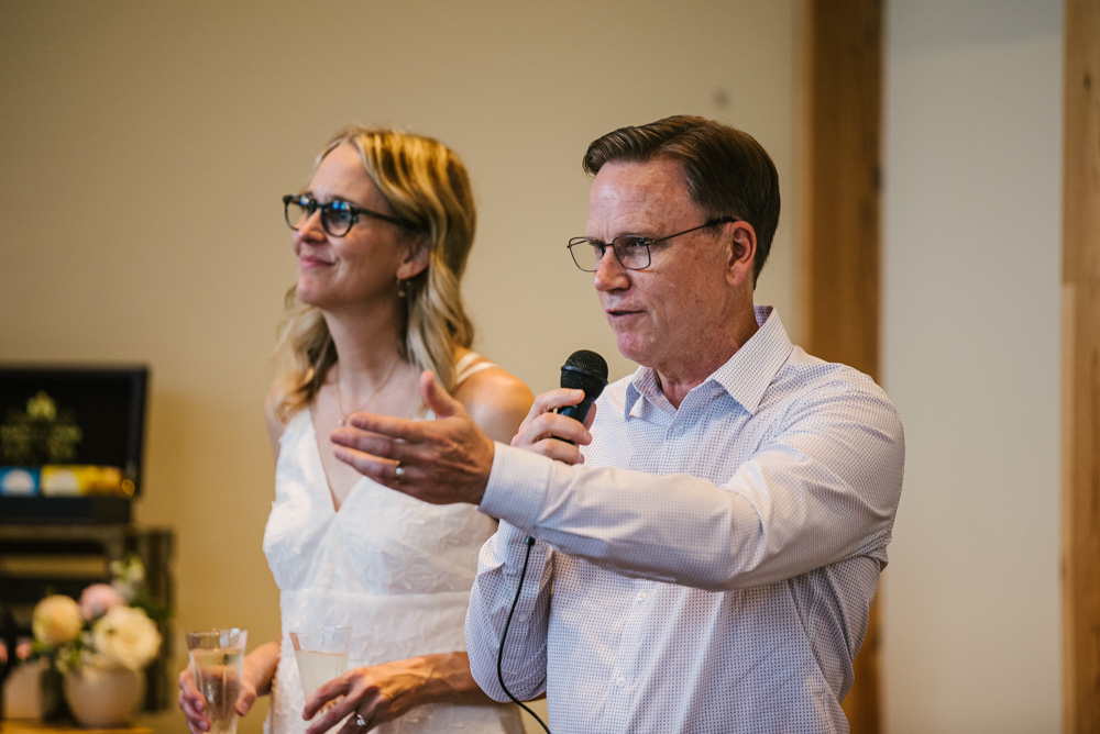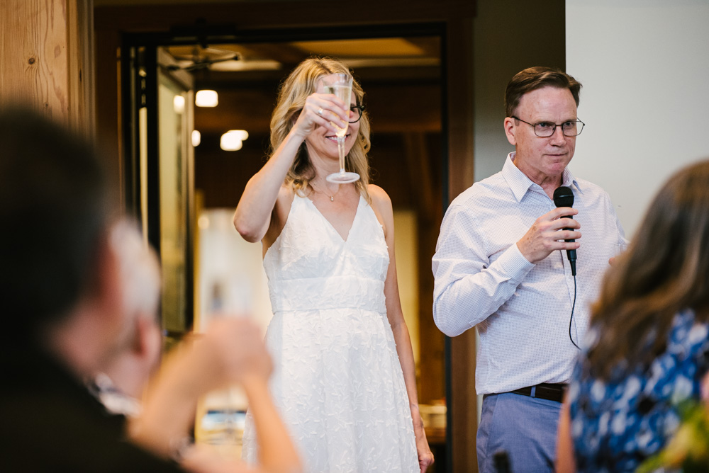 Guests gather in the Glasloft for the reception to celebrate the just-married couple. Drinks were enjoyed in the pub before dinner which was kicked of with words of thanks and a toast from Heather and David.