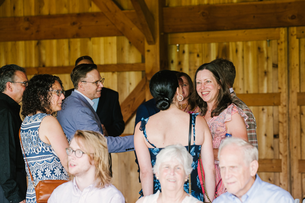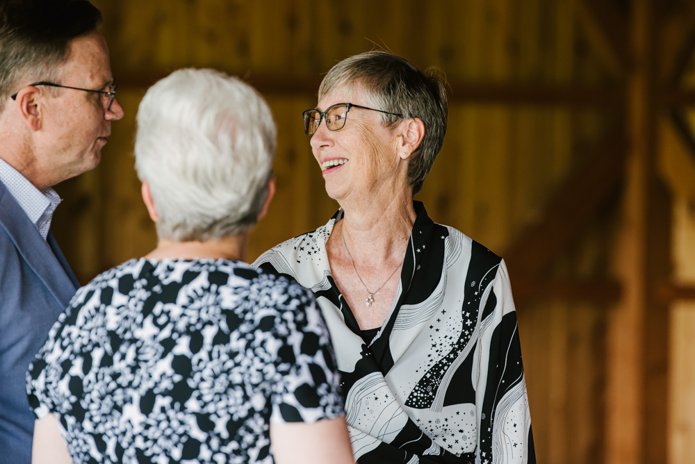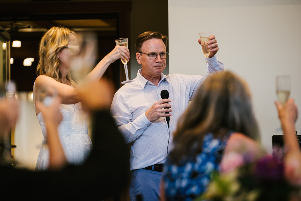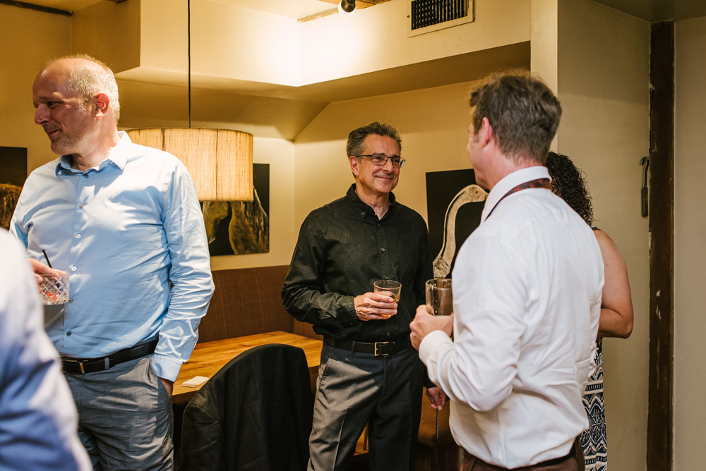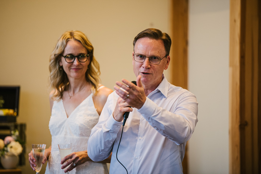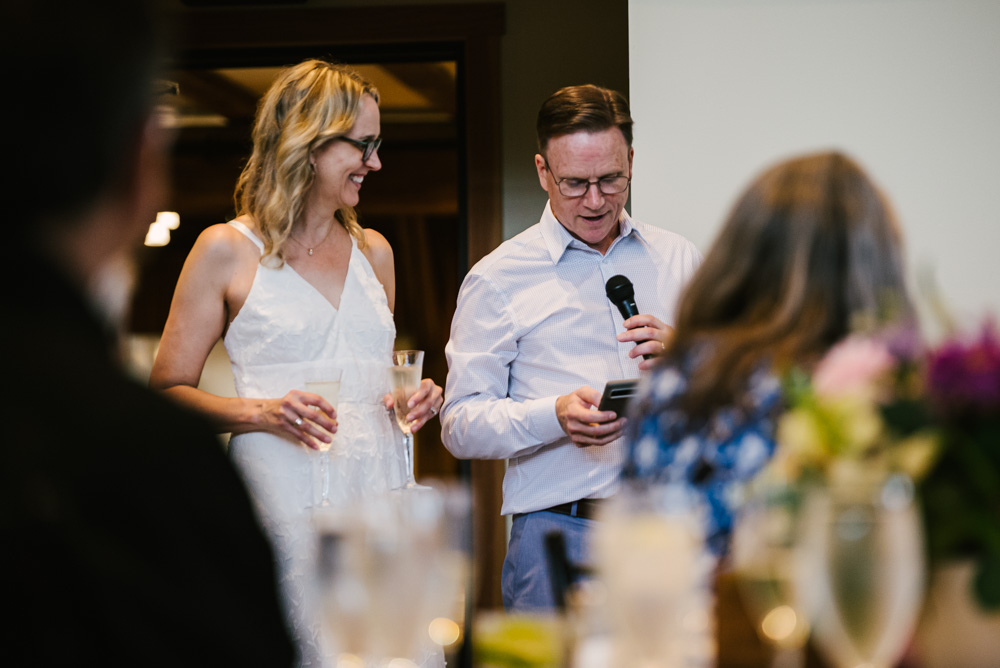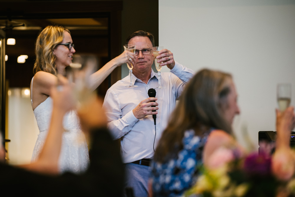 Guests gather in the Glasloft for the reception to celebrate the just-married couple. Drinks were enjoyed in the pub before dinner which was kicked of with words of thanks and a toast from Heather and David.