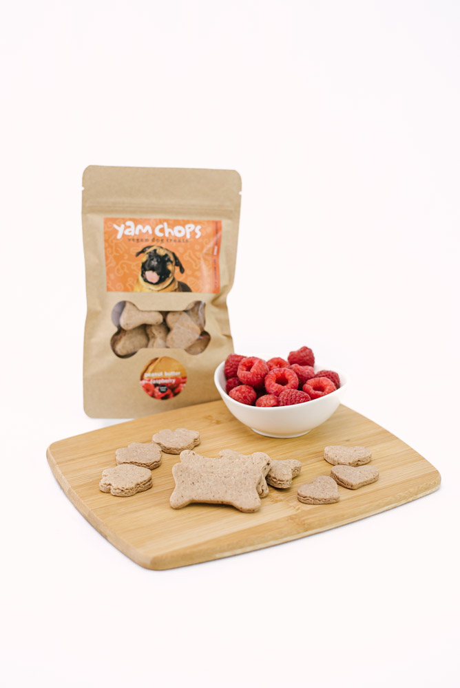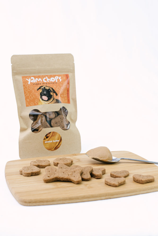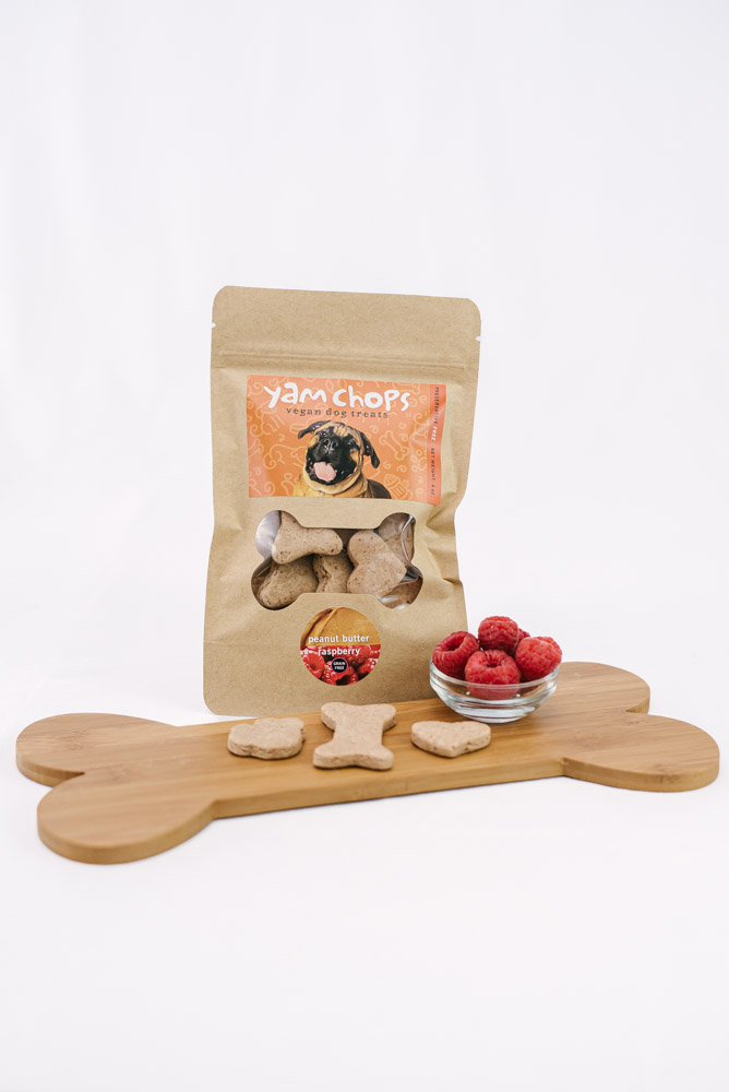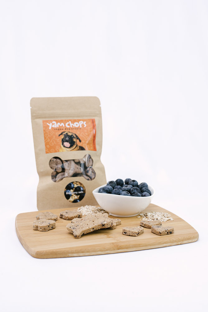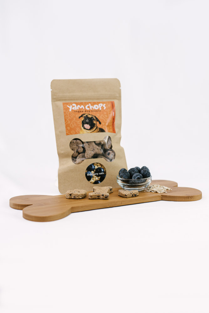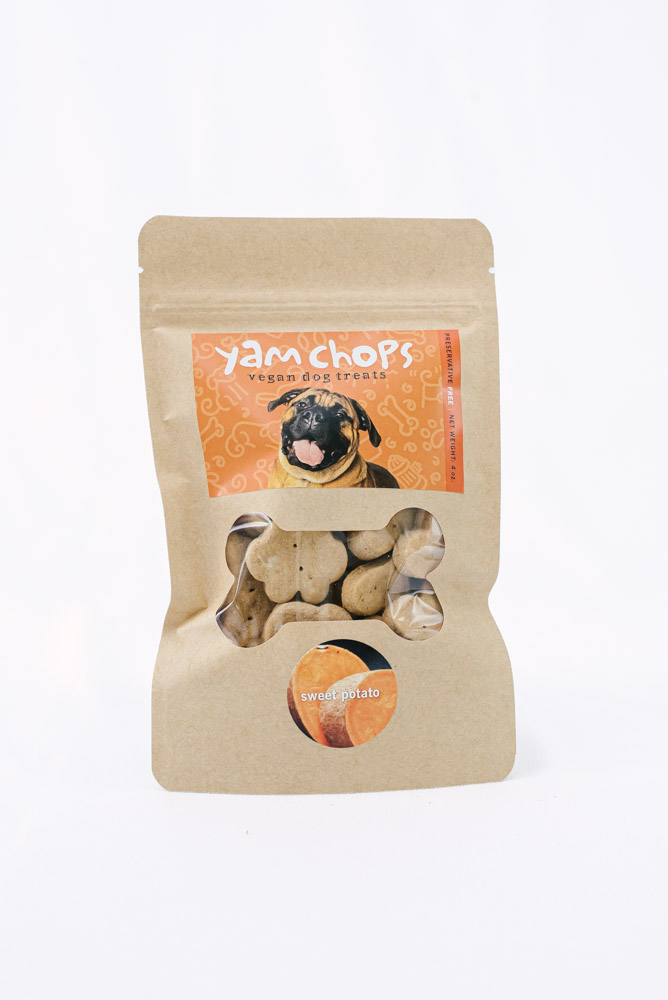 Yam Chops Vegan Dog Treats makes preservative-free, vegan dog treats using limited, all natural ingredients. Founded in 2020, Yam Chops was started after owner Kelsey adopted her puppy Yamlen, aka Yam (You can see his cute face gracing the front of every treat package!). Because of her passion for clean eating and veganism, she immediately set out to develop recipes for Yam. Soon after, she realized the treats she made were a huge hit with our friend’s and families’ dogs. This proved that Yam Chops could provide treats that were both healthy and tasty.